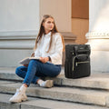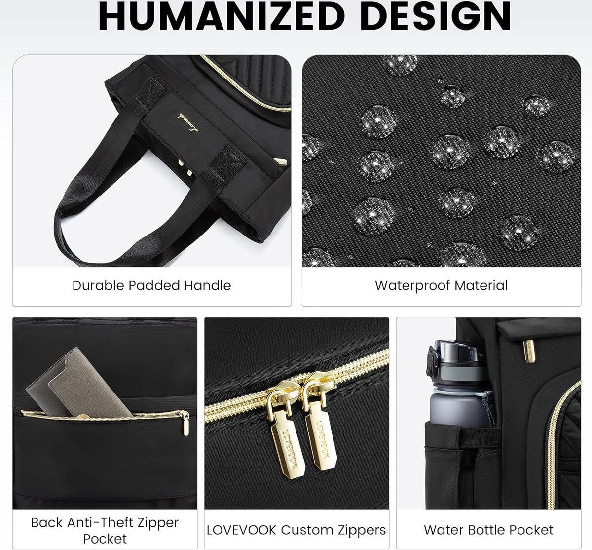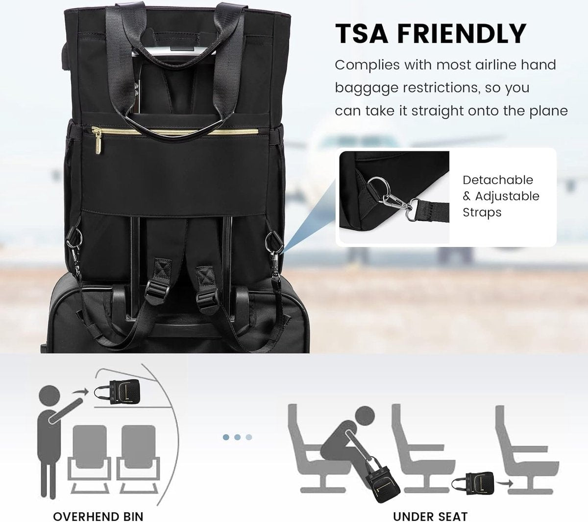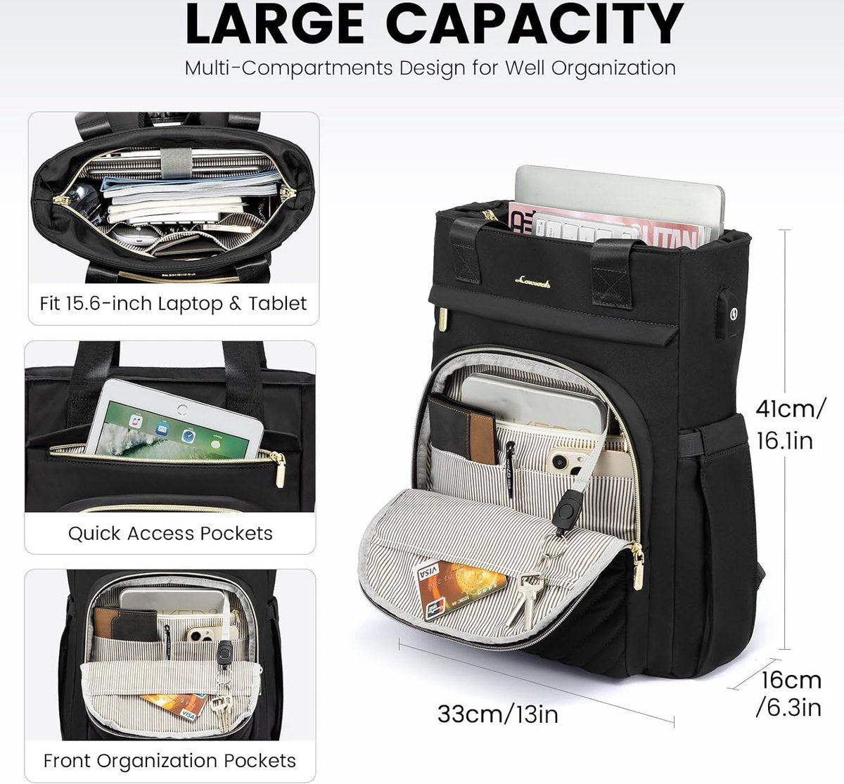 • 2-delige damesrugzak: deze laptoptas is uitgerust met een grote met leer beklede handgreep, die over de schouder of in de hand kan worden gehouden. De afneembare schouderriemgesp maakt het mogelijk om een uiteinde van de riem te verwijderen om hem aan de achterste bagageriem aan een trolley of koffer te plaatsen. Het is niet alleen een rugzak, maar ook een elegante schoudertas of een mooie handtas.