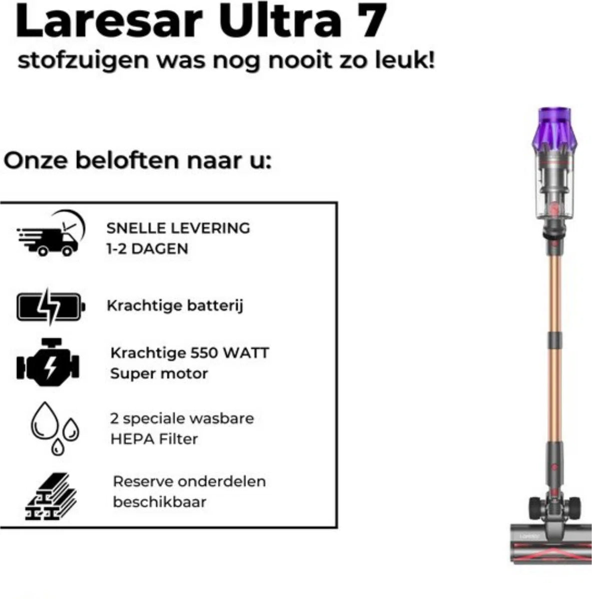 Laresar V7 - Stofzuiger Draadloos - Steelstofzuiger - Stofzuiger zonder zak - Steelstofzuiger draadloos - Vacuum Cleaner - Stofzuigers - Krachtige Draadloze Stofzuiger Zonder Zak V7 500W 50kpa
