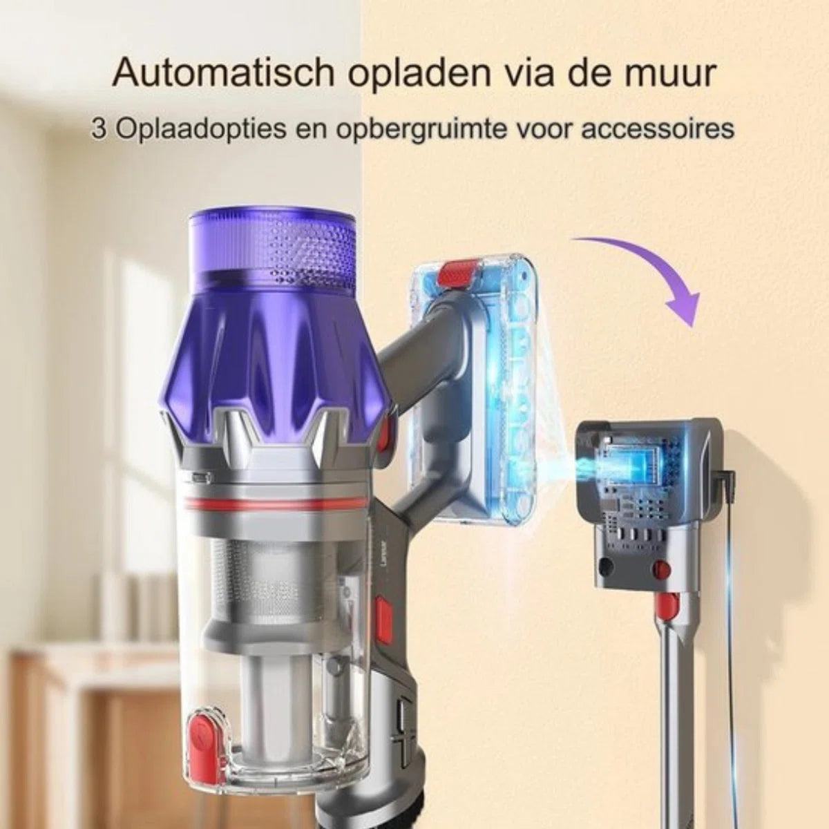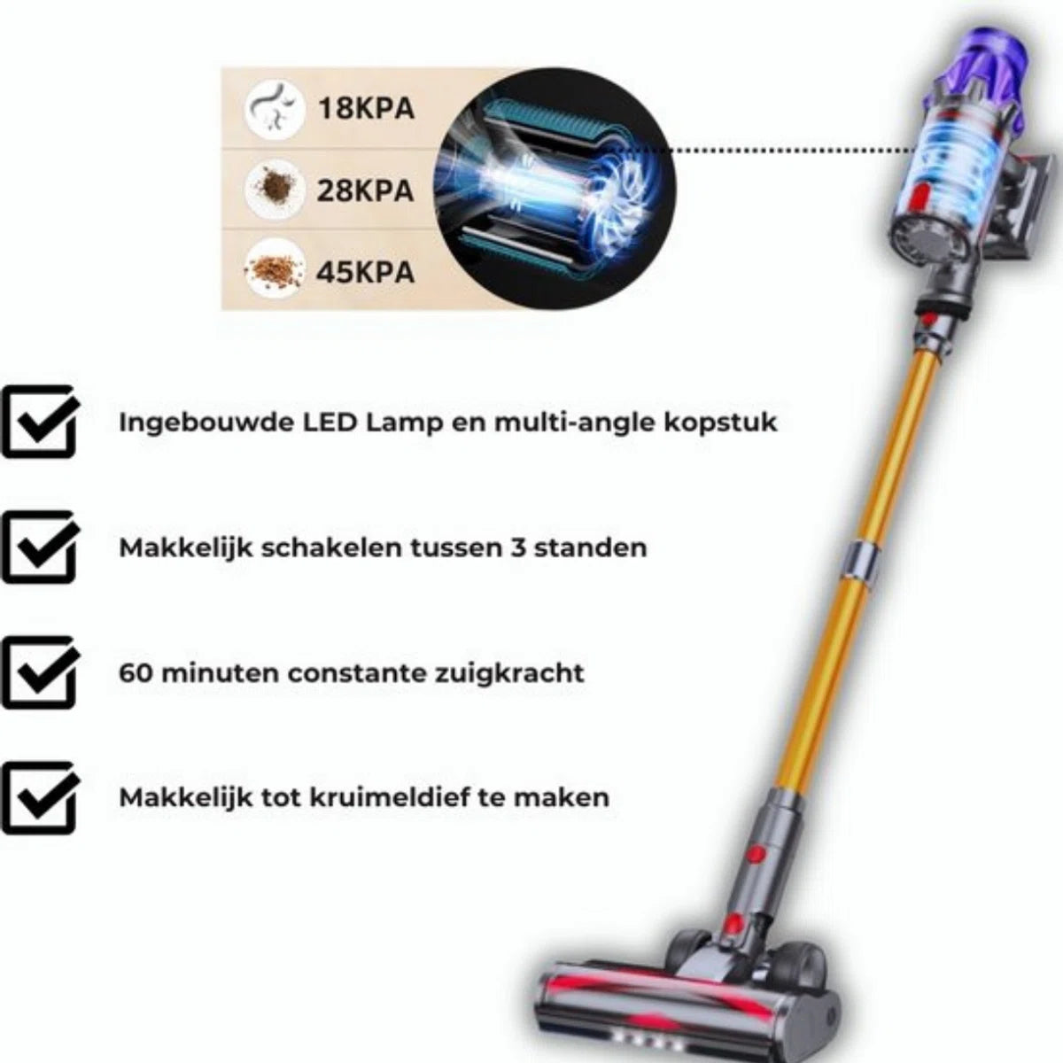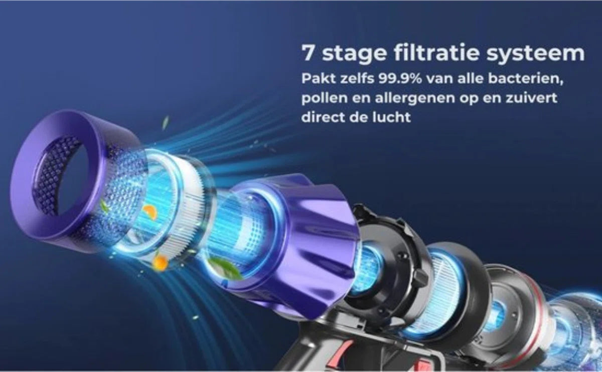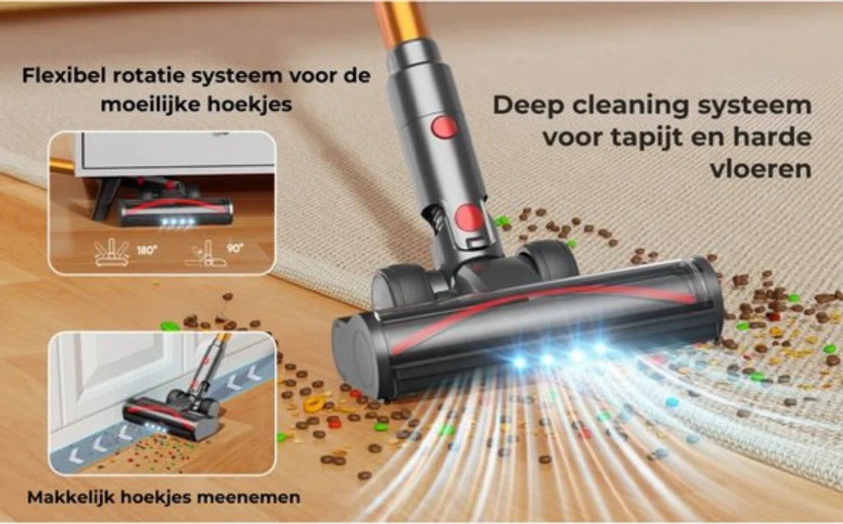 Ervaar het gemak en de kracht van deze draadloze verticale stofzuiger voor een moeiteloze reiniging van elke ruimte in uw huis!