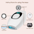 Het ergonomische ontwerp maakt het apparaat eenvoudig in gebruik en ligt comfortabel in de hand. Het duidelijke LED-display geeft u direct inzicht in de resterende flitsen en de geselecteerde energiestand, zodat u altijd volledige controle heeft over uw behandeling.
