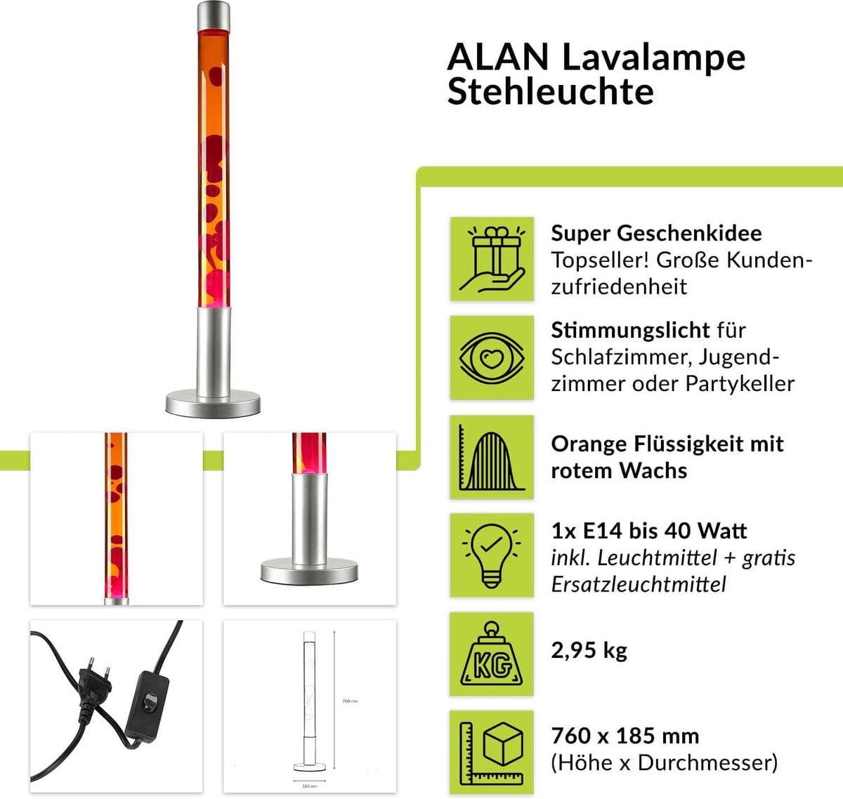 De Lavalamp 'Alan' is de perfecte toevoeging voor wie op zoek is naar een unieke sfeerverlichting met een retro uitstraling. Of het nu is om je woonkamer op te fleuren of om een speciale touch aan je feest te geven, deze lavalamp zorgt gegarandeerd voor bewonderende blikken. Bestel nu en voeg een bijzonder element toe aan je interieur!