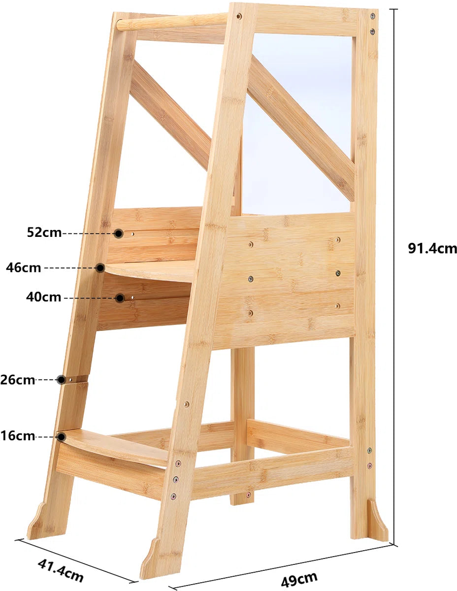 【Hoogwaardige materialen】Gemaakt van hoogwaardig bamboe met een niet-giftige, loodvrije coating, deze leertoren voor kinderen heeft een stevige en duurzame constructie.