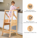 【Veiligheidsbescherming】Kinderkeukentoren heeft vier veiligheidsstangen om te voorkomen dat kinderen zijwaarts vallen. De versterkte poten en trapeziumvormige structuur verbeteren de stabiliteit en het evenwicht van deze leertoren.