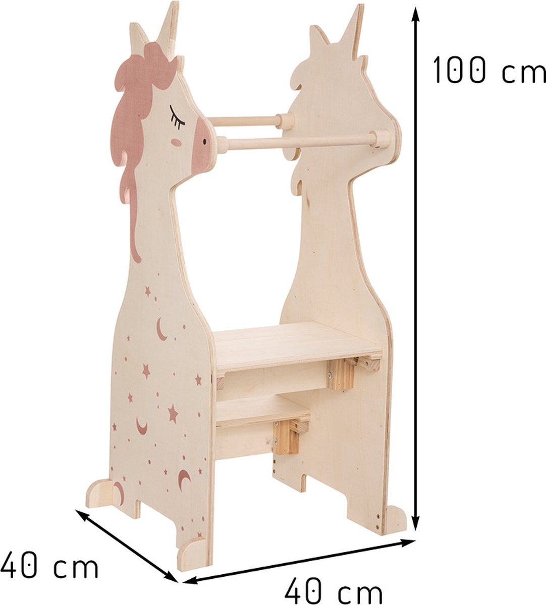 De Licorne is een handige leertoren voor kinderen die graag mama of papa willen observeren en helpen. De opstapkruk is gemaakt van dennenhout en heeft 2 treden. Afmetingen 40 x 40 x 100 cm