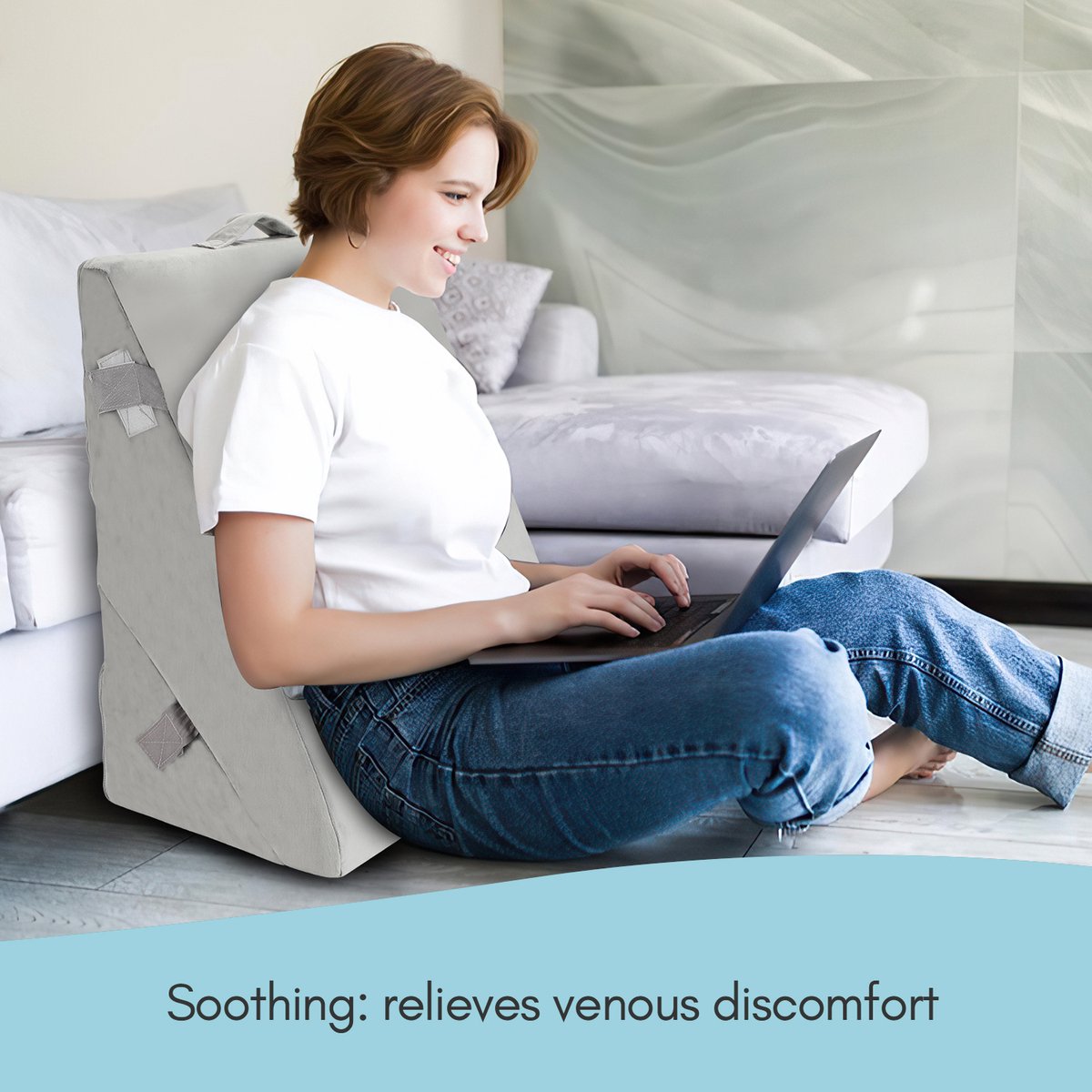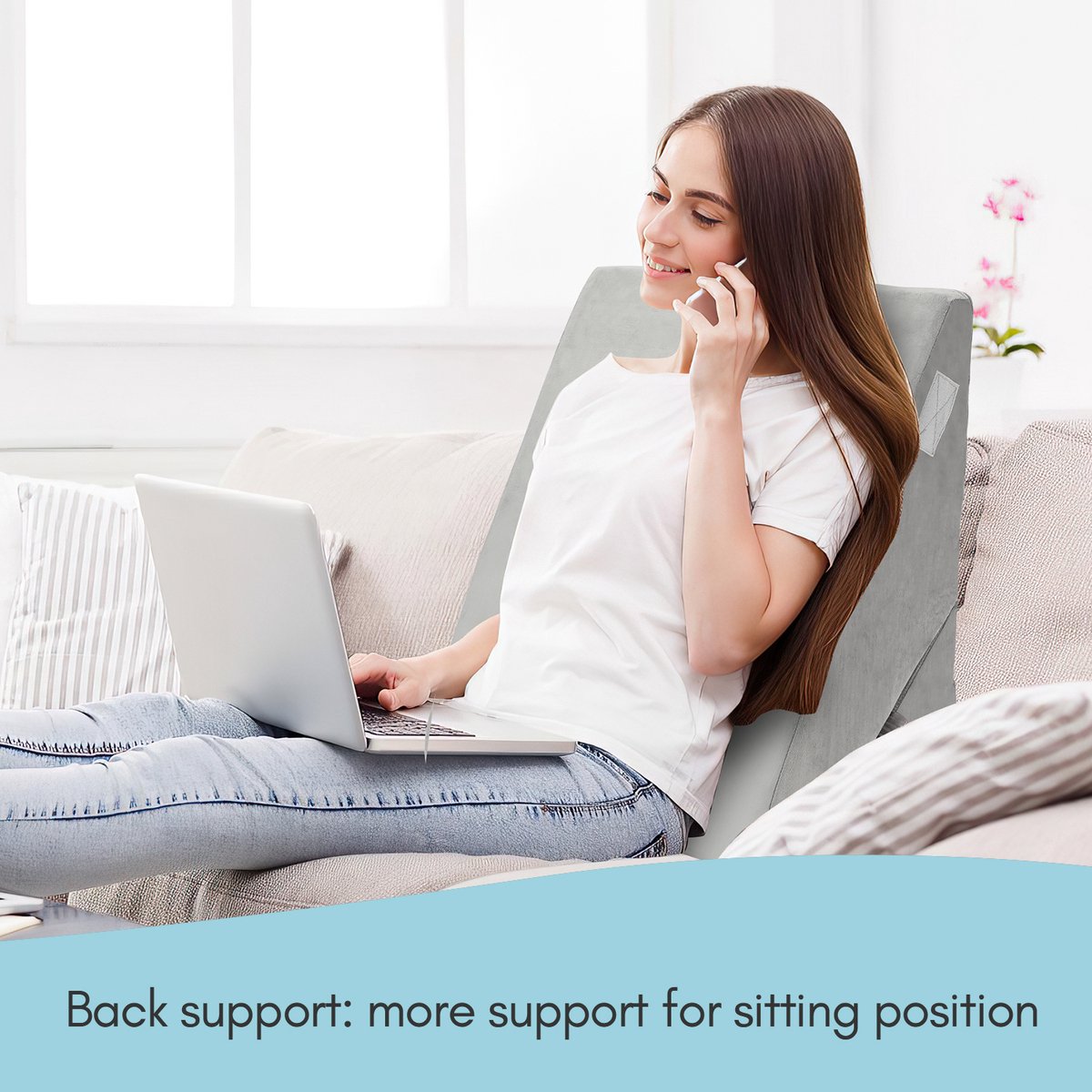 Leeskussen voor in bed en bank Zitkussen Driehoekig Wigkussen verstelbaar - druk verdelend - zowel voor benen als rug - wig kussen Lekker Lui Lezen Kussen Grijs hellingkussensysteem Voor Benen En Rugsteunkussen
