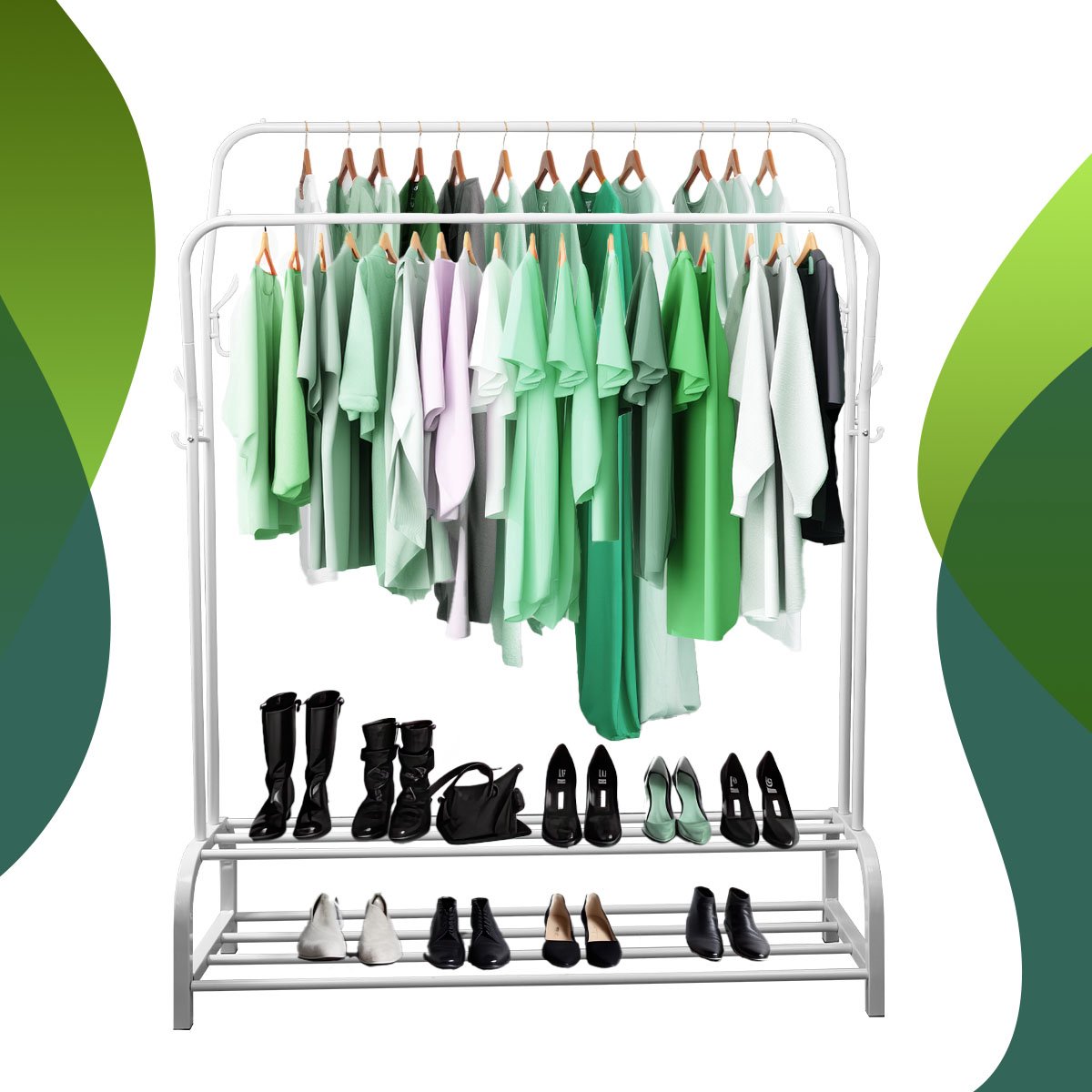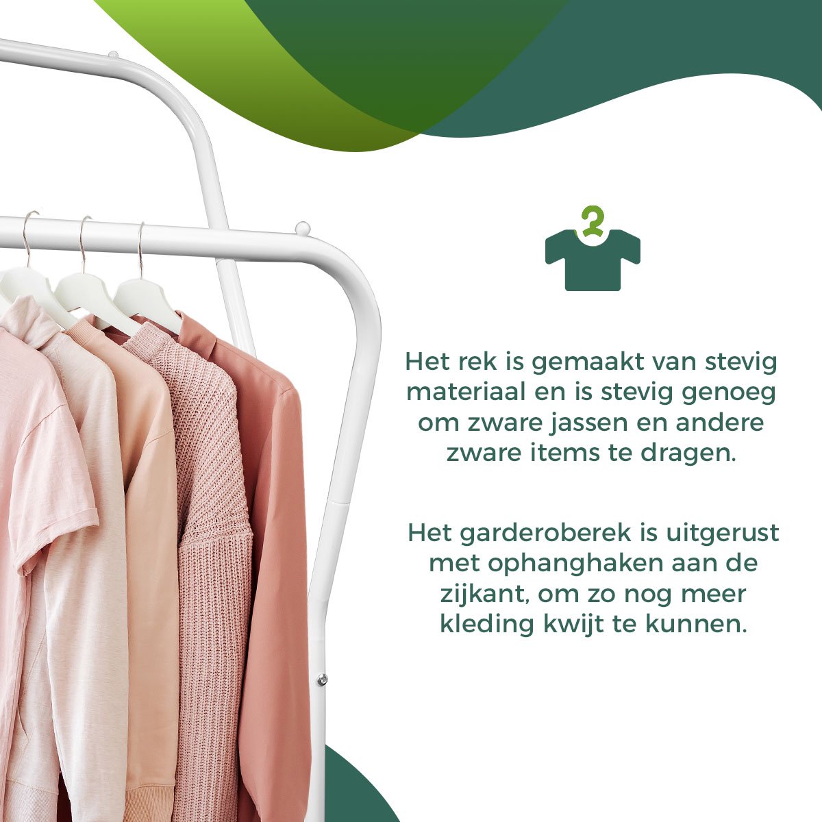 Ons kledingrek biedt de perfecte oplossing voor het organiseren en opslaan van uw kleding. Het rek is gemaakt van stevig materiaal en is stevig genoeg om zware jassen en andere zware items te dragen. Met behulp van kledinghanger, kunt u uw kledingstukken gemakkelijk organiseren en vinden. Het minimalistische design past in elke kamer en is een geweldige toevoeging aan uw huis. Het garderoberek is uitgerust met ophanghaken aan de zijkant, om zo nog meer kleding kwijt te kunnen.