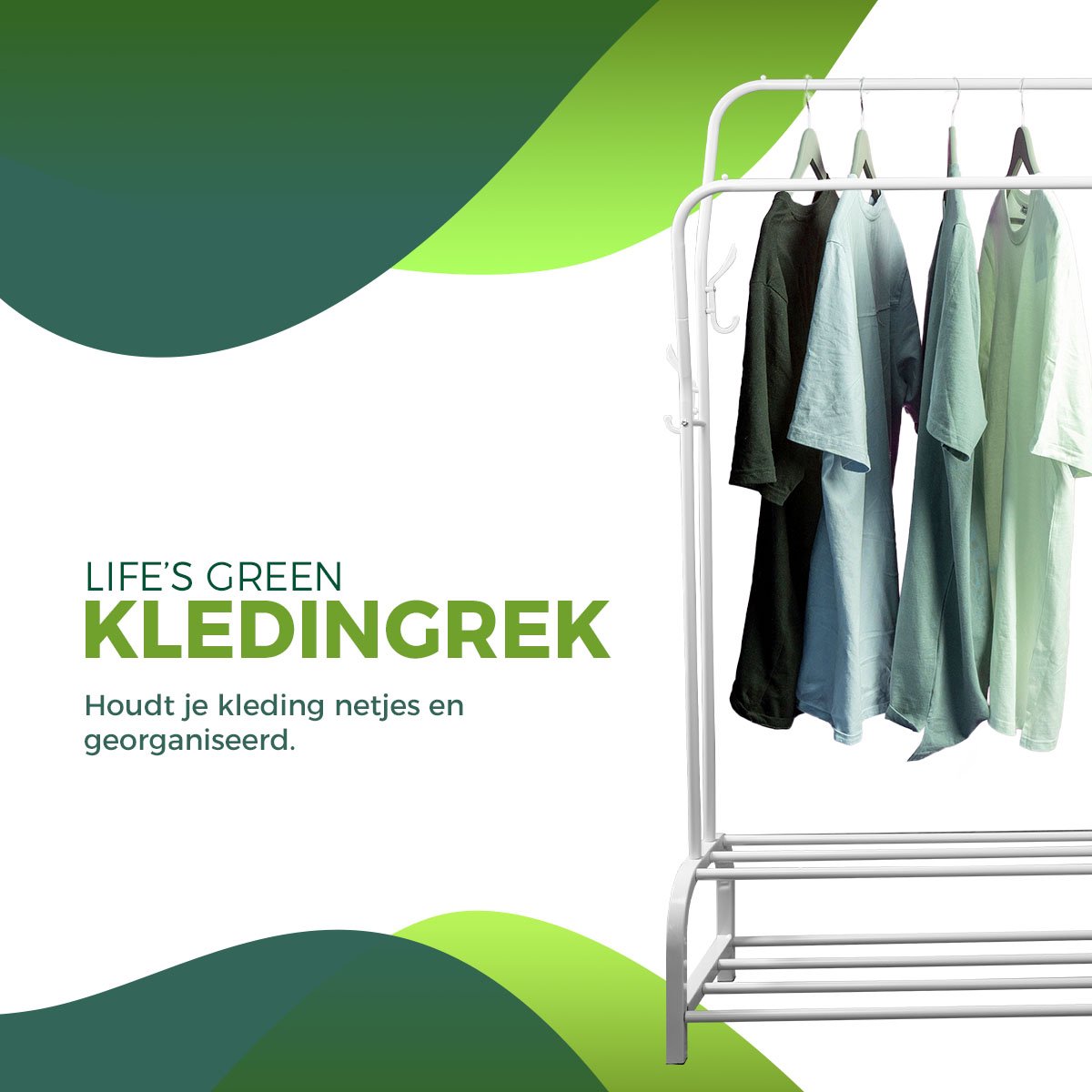 LG Life’s Green XL Kledingrek - Dressboy – Wit – Metaal – Garderoberek met ophanghaken – H146xB110xD35 cm