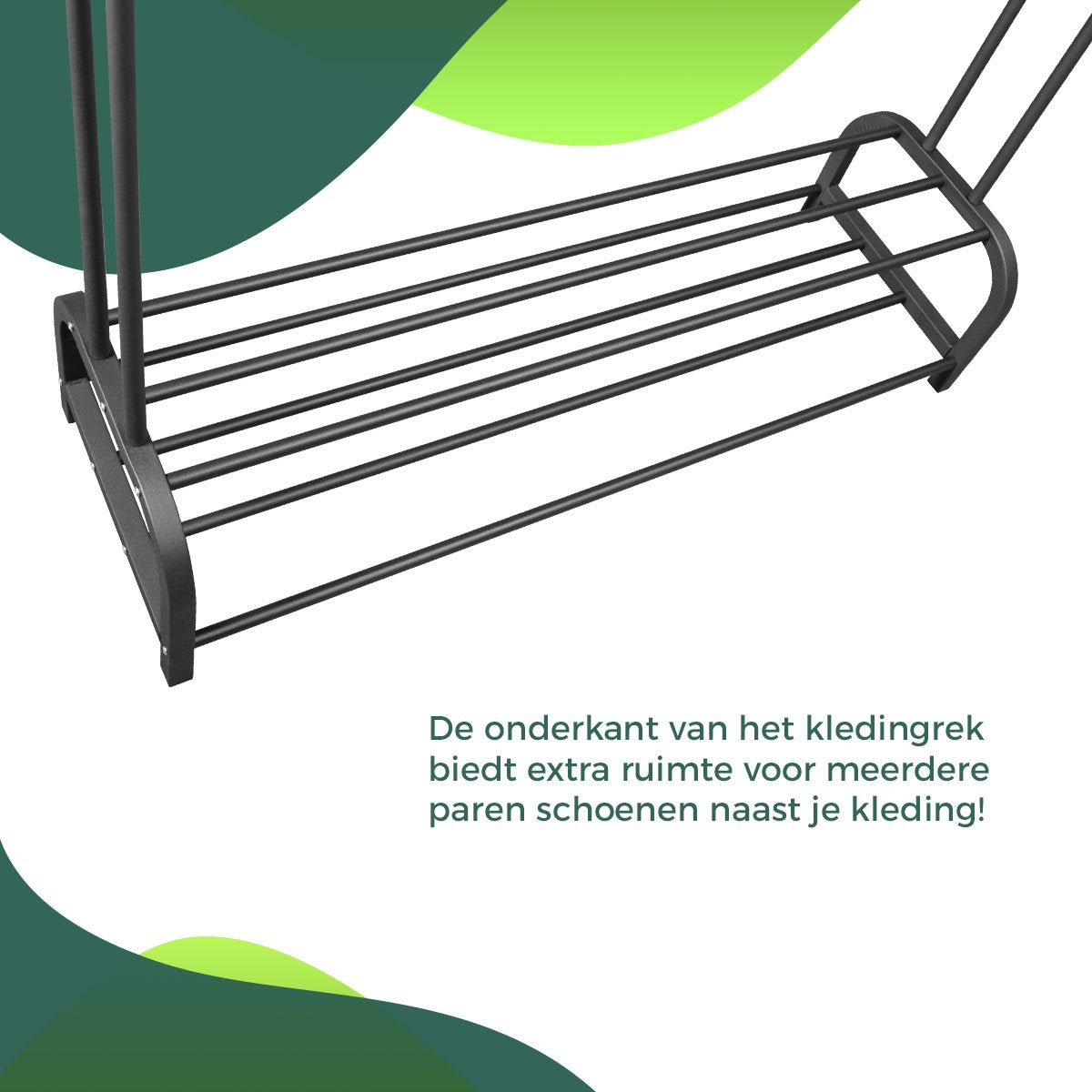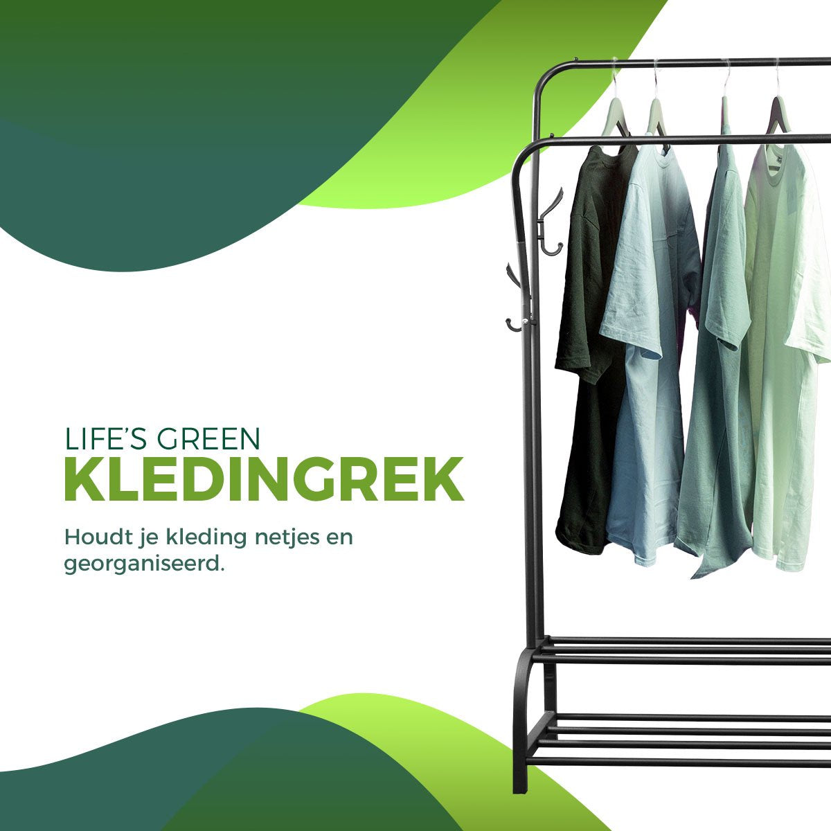 LG Life’s Green XL Kledingrek - Dressboy – Zwart – Metaal – Garderoberek met ophanghaken – H146xB110xD35 cm