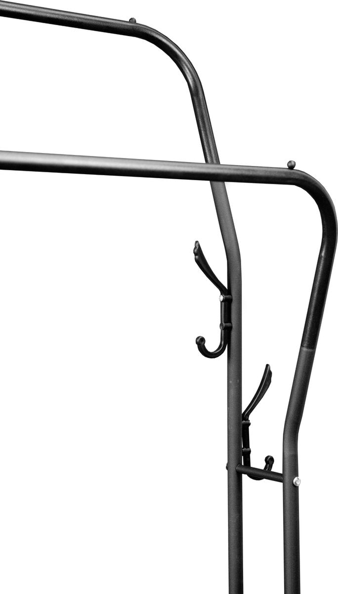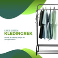 Ons kledingrek biedt de perfecte oplossing voor het organiseren en opslaan van uw kleding. Het rek is gemaakt van stevig materiaal en is stevig genoeg om zware jassen en andere zware items te dragen. Met behulp van kledinghanger, kunt u uw kledingstukken gemakkelijk organiseren en vinden. Het minimalistische design past in elke kamer en is een geweldige toevoeging aan uw huis. Het garderoberek is uitgerust met ophanghaken aan de zijkant, om zo nog meer kleding kwijt te kunnen.