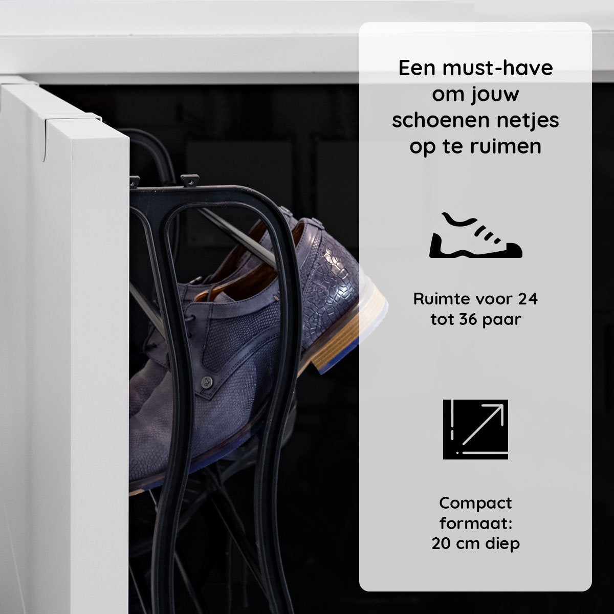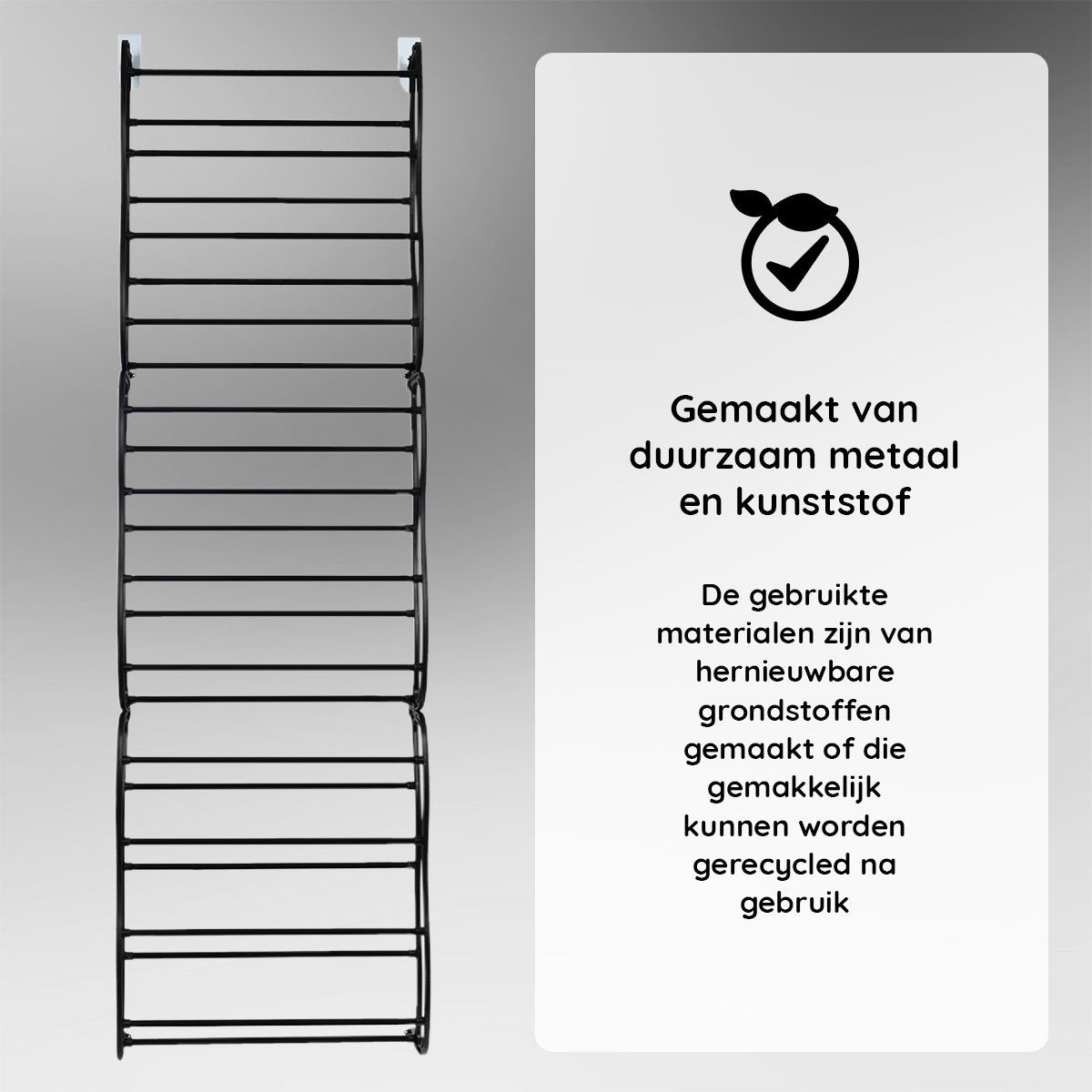 LG Life's Green Schoenenrek Hangend – 180x50x20cm - Schoenenkast – Geschikt Voor Stompe en Opdek Deuren – Schoenenrek voor 24 tot 36 Paar Schoenen – Deurhanger – Ruimtebesparende Schoenenbank – Schoenenopberger – Kunststof/Metaal – Zwart