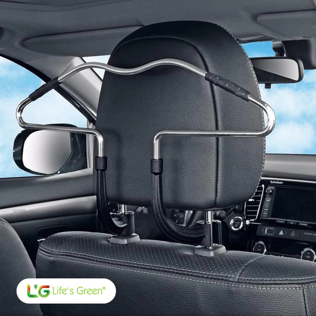 De Life's Green® kledinghanger benut de beperkte ruimte in je auto optimaal. Eenvoudig te