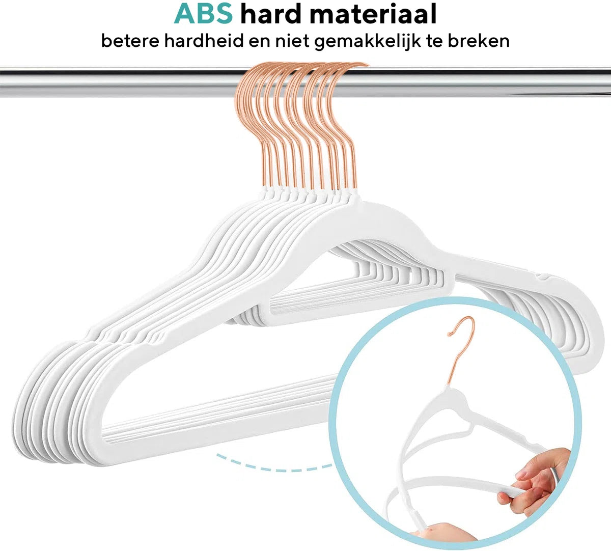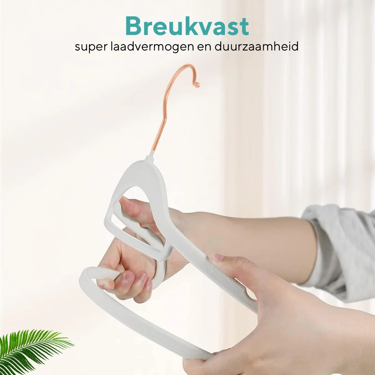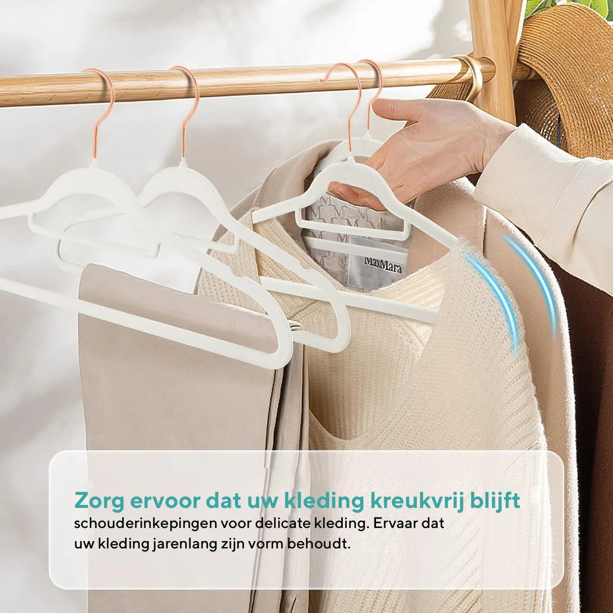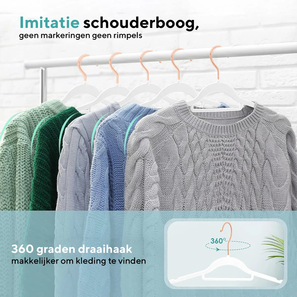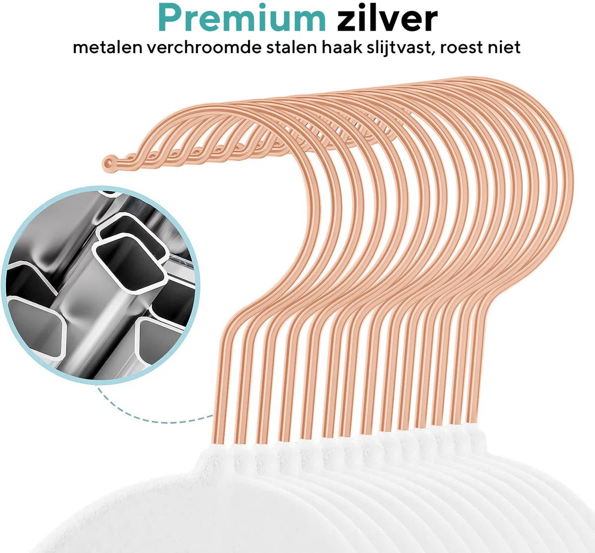 Life's green® Velvet Hanger - Fluwelen Kleerhangers - 50 Stuks - Kledinghangers - Anti-slip - Velvet – Wit met Rosé haak