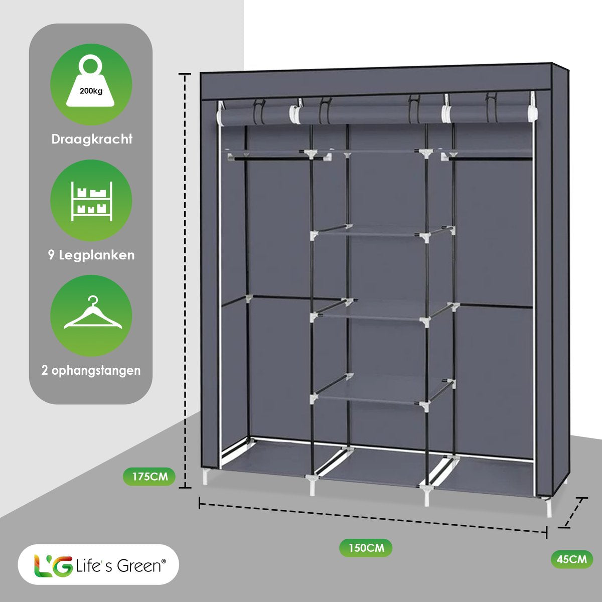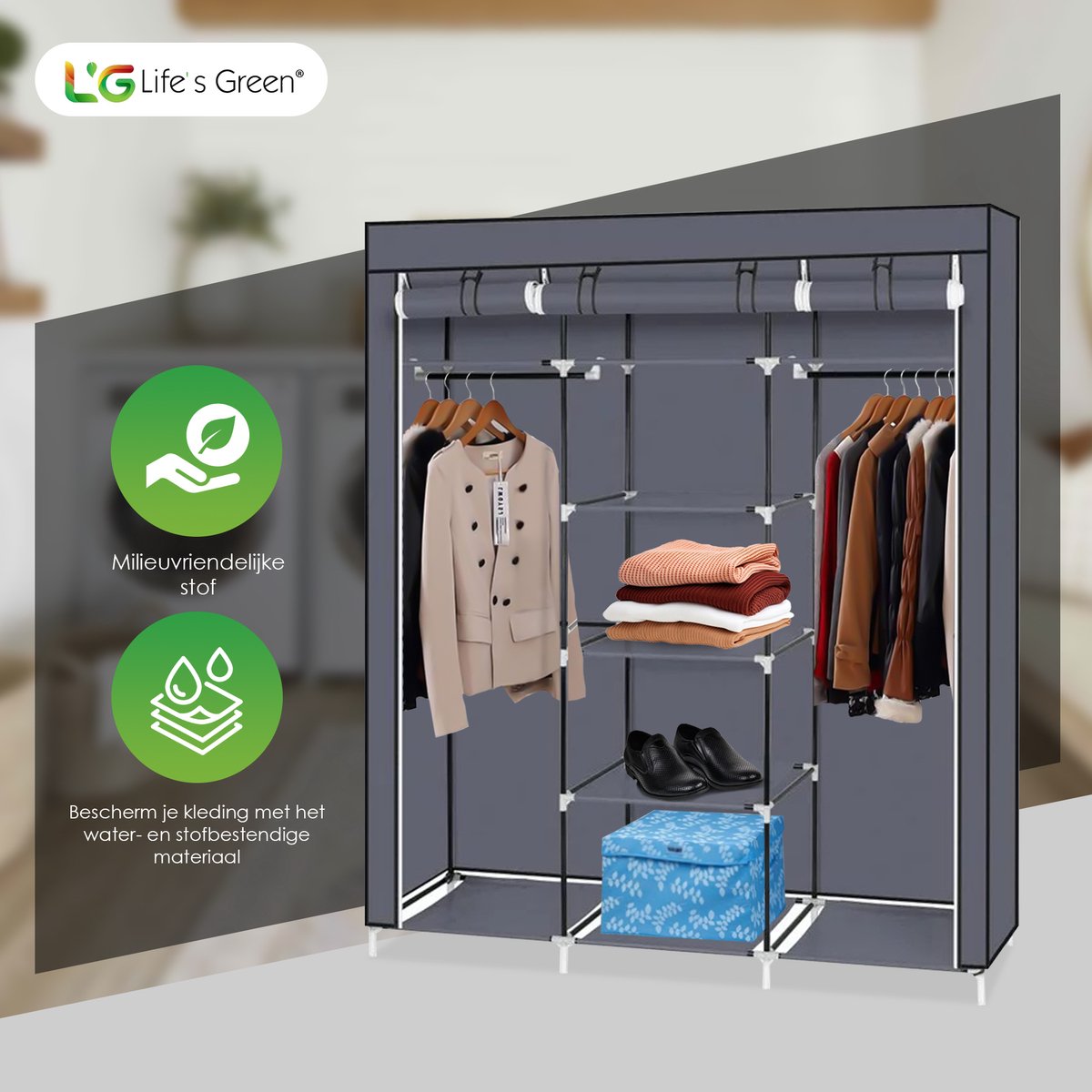 Life's Green® XXL Opvouwbare Kledingkast - Campingkast - Opvouwbare - Opbergkast - Stoffen - Grijs
