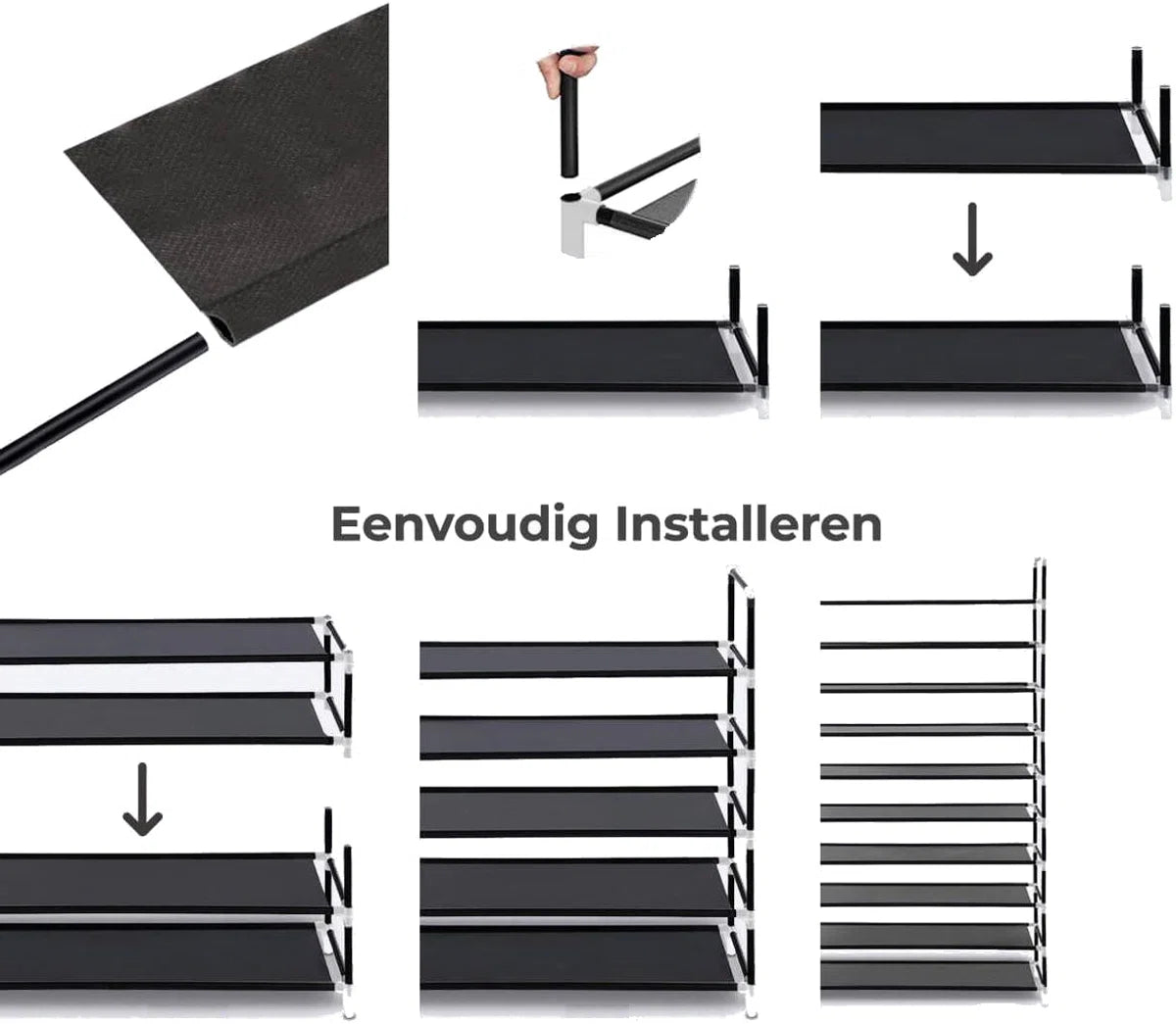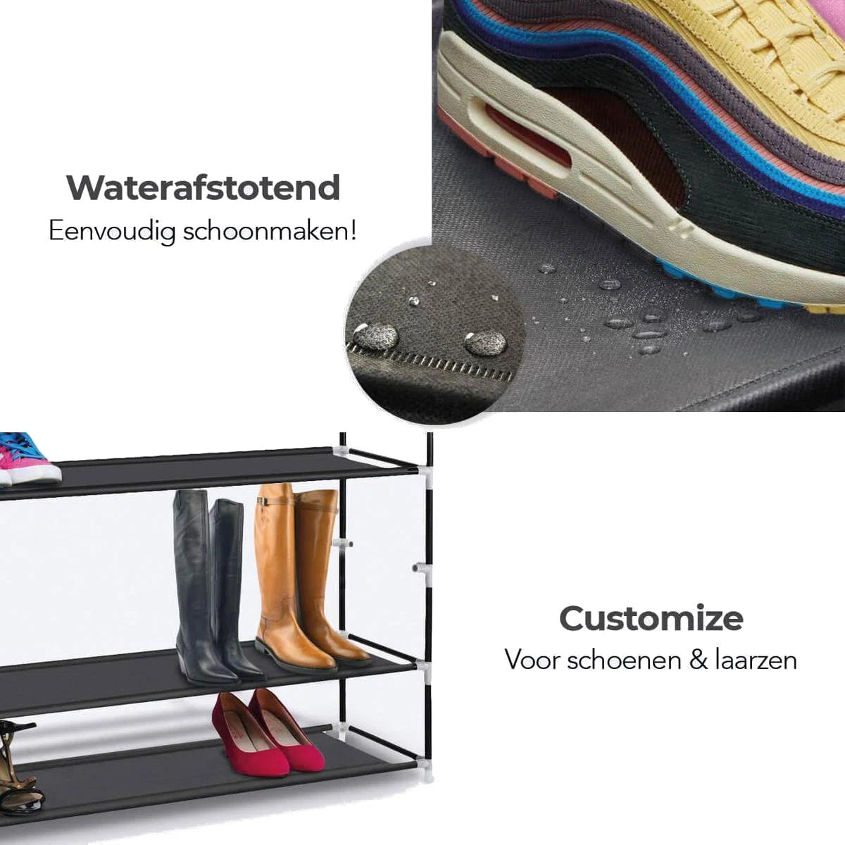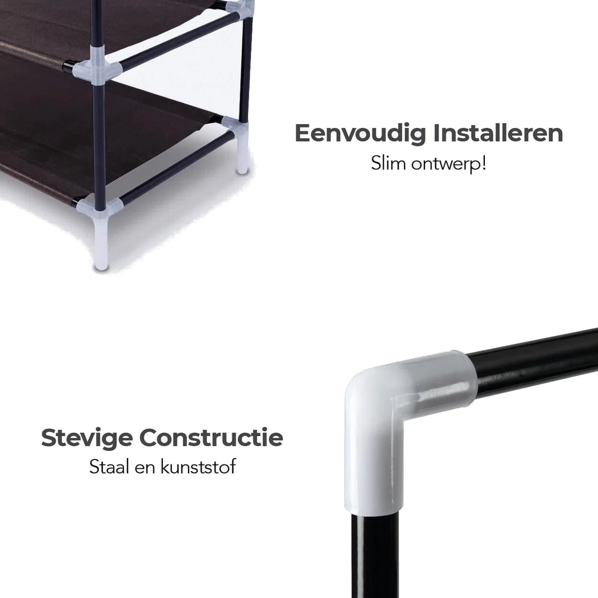 Life's Green verplaatsbare Schoenenkast met 5 niveaus – D27.5 x B99 x H94 cm – voor 20 paar schoenen – stalen frame met stevige Stoffen Planken – Handdoekenrek - Ruimtebesparende Schoenenkast - Zwart
