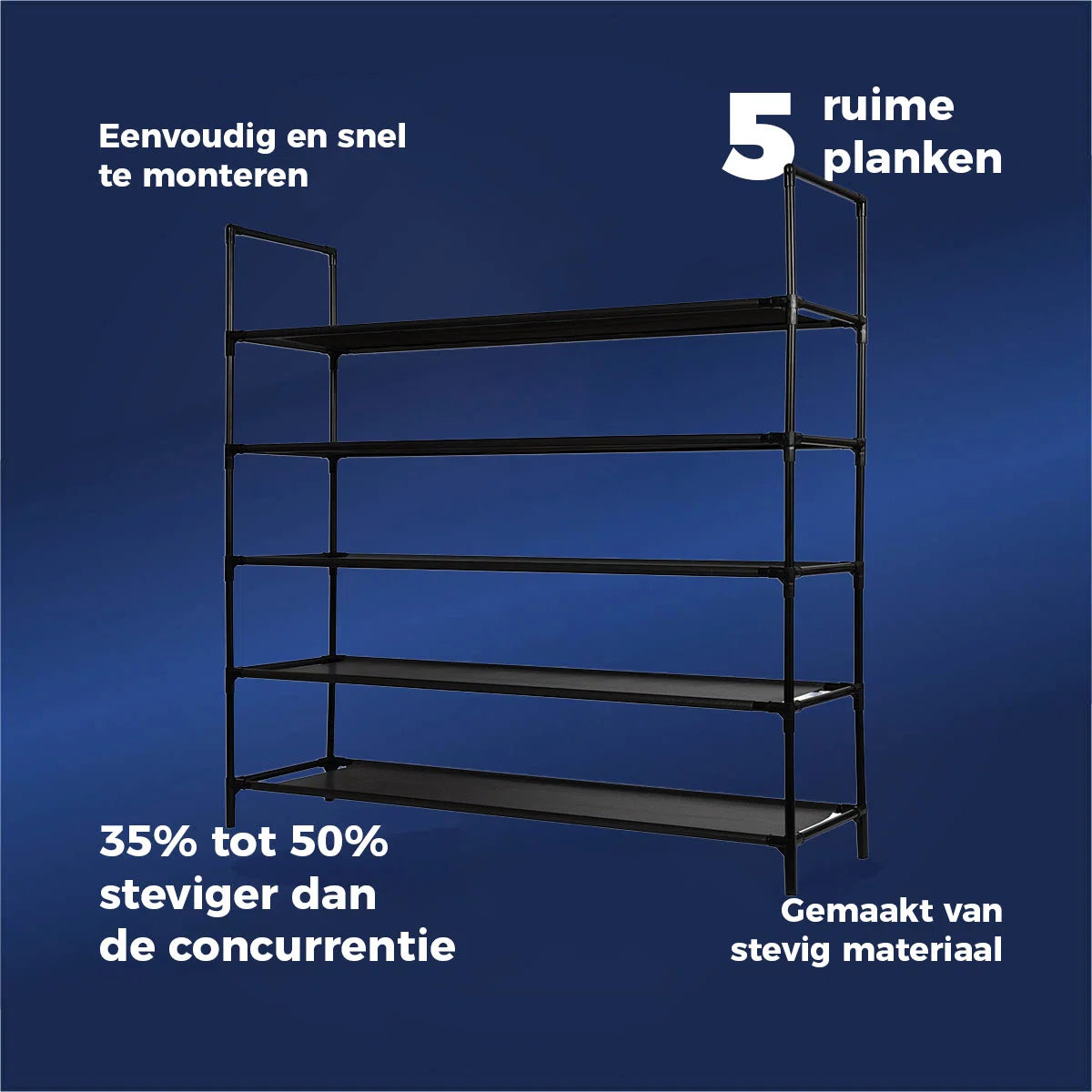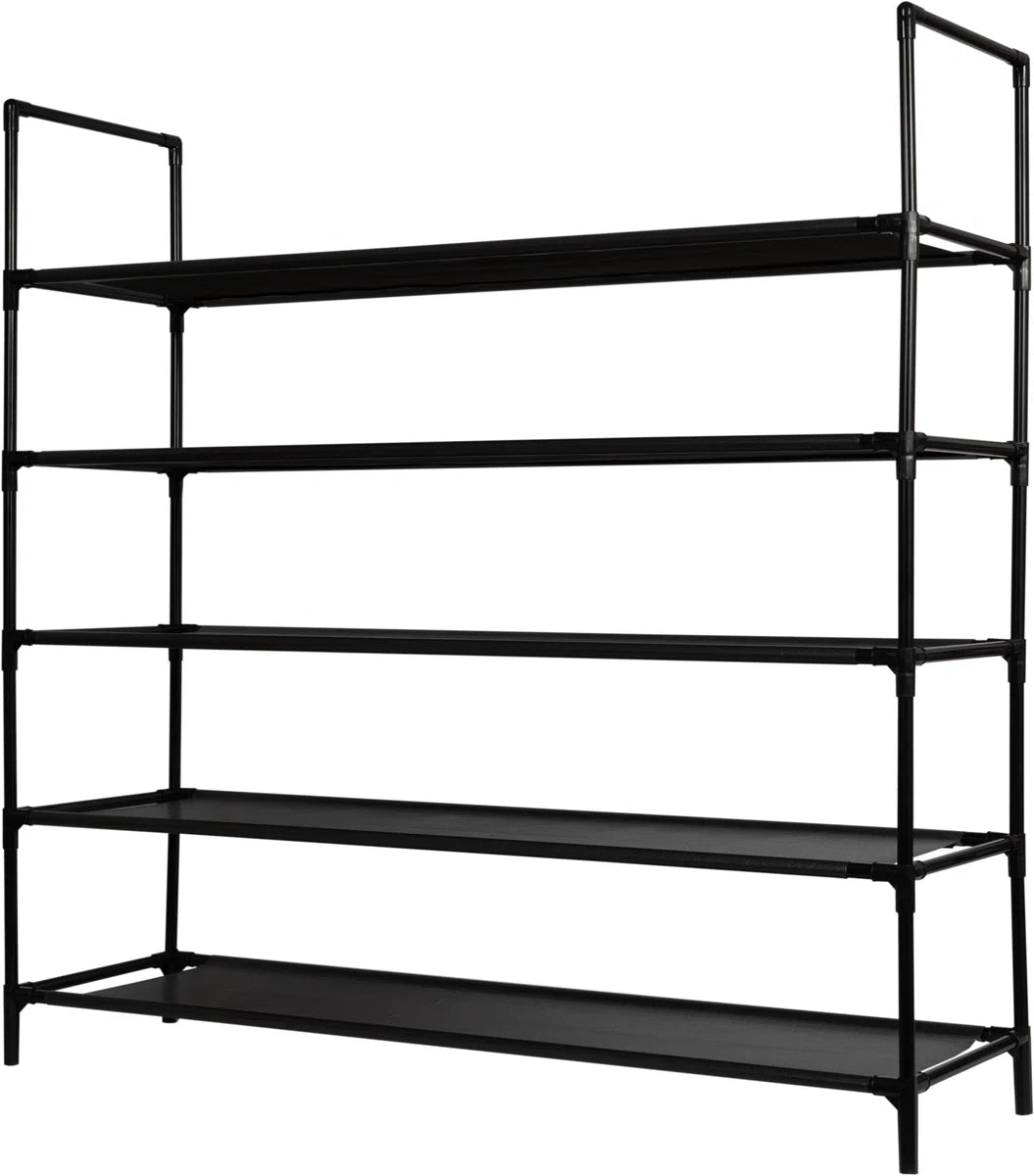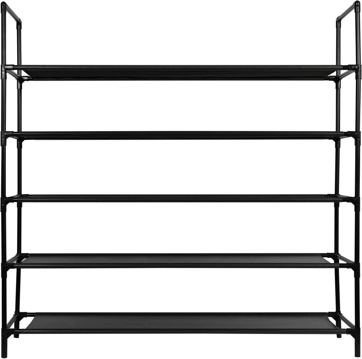 Life's Green verplaatsbare Schoenenkast met 5 niveaus – D27.5 x B99 x H94 cm – voor 20 paar schoenen – stalen frame met stevige Stoffen Planken – Handdoekenrek - Ruimtebesparende Schoenenkast - Zwart