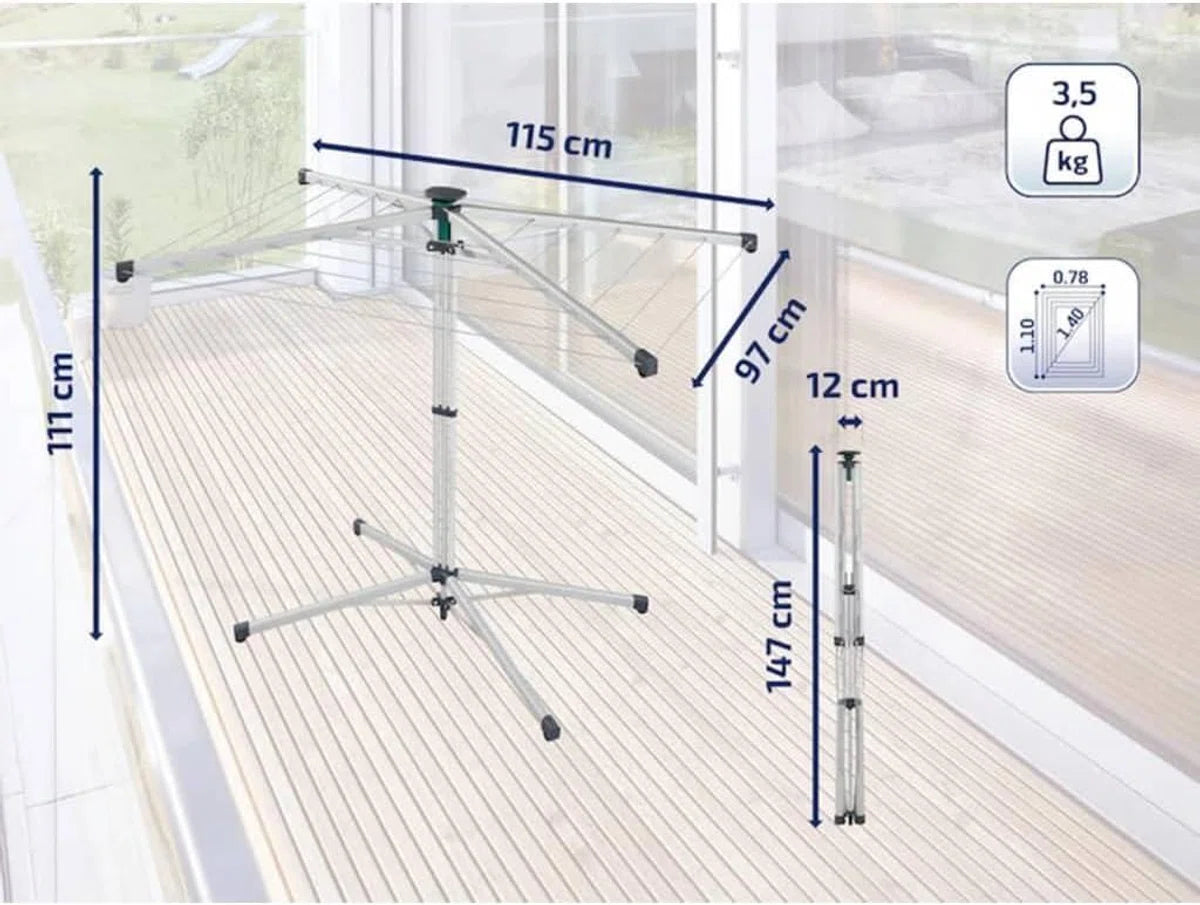 De Leifheit linoPop-Up 140 is de ideale droogmolen voor iedereen die op zoek is naar gemak en comfort bij het drogen van de was. Met de mogelijkheid tot comfortabele bediening met één hand, is deze droogmolen snel en eenvoudig te openen en te sluiten. Of je nu thuis bent, gaat kamperen of met de caravan op pad gaat, de Leifheit linoPop-Up 140 is altijd handig, compact en licht van gewicht.Voordelen van de Leifheit linoPop-Up 140: - 14 meter linnenlengte biedt ruimte voor meer dan een wasmachinevulling in de kleinste ruimte - Buitenzijde van de droogmolen biedt met 95 cm hoogte ruimte voor lang wasgoed - Ruimtebesparend opgeborgen: ingeklapt slechts 12 cm smal en met een gewicht van slechts 3,6 kg gemakkelijk te vervoeren en op te bouwen - Veilige stand dankzij stabiele linnenarmen en breed stavlakMet de Leifheit linoPop-Up 140 wordt het drogen van je was een fluitje van een cent. Niet alleen biedt deze droogmolen voldoende ruimte voor al je wasgoed, maar is hij ook nog eens gemakkelijk op te bergen en te vervoeren. Zo wordt het drogen van de was een stuk eenvoudiger en efficiënter.Productspecificaties: - Materiaal: Kunststof - Afmetingen: 12 x 9 x 147 cm - Inclusief beschermhoes - Geschikt voor 14 m linnenlengte - Gewicht: 3,6 kg - Art. Nr. 82500Met de Leifheit linoPop-Up 140 haal je een handige en compacte droogmolen in huis die voldoet aan al je wensen en eisen. Bestel hem nu en geniet van het gemak van de Leifheit droogmolen!