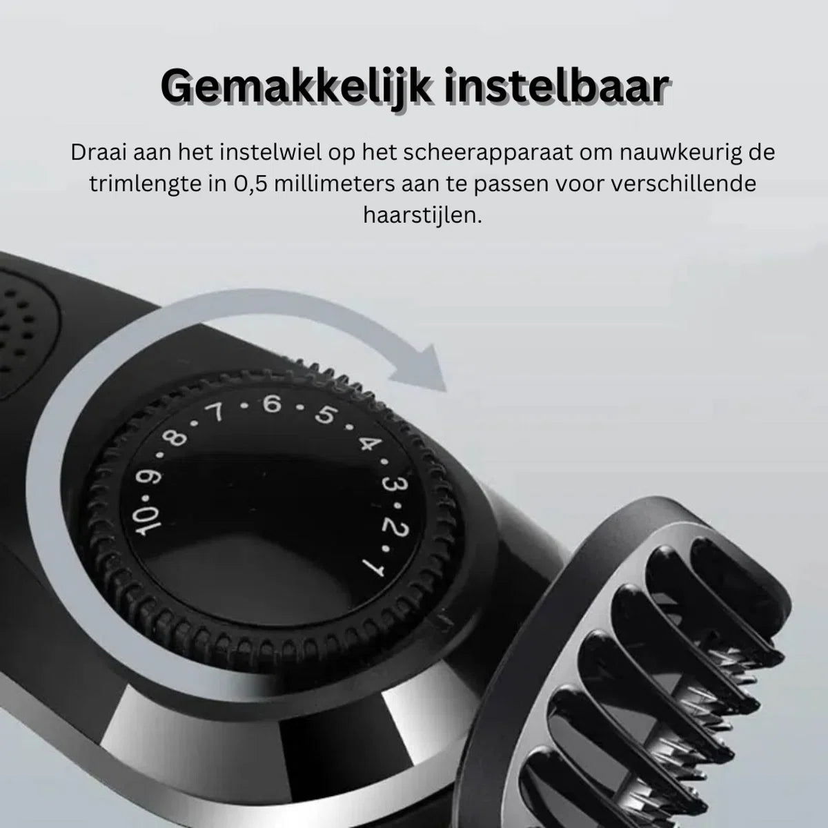 De set bevat een verstelbare haargeleidingskam (1-10mm) met een precisiewiel (alleen voor de full-size stalen trimmer). Hiermee kun je kiezen uit 19 lengte-instellingen (0,5 mm per stap) voor een gepersonaliseerde trimervaring.