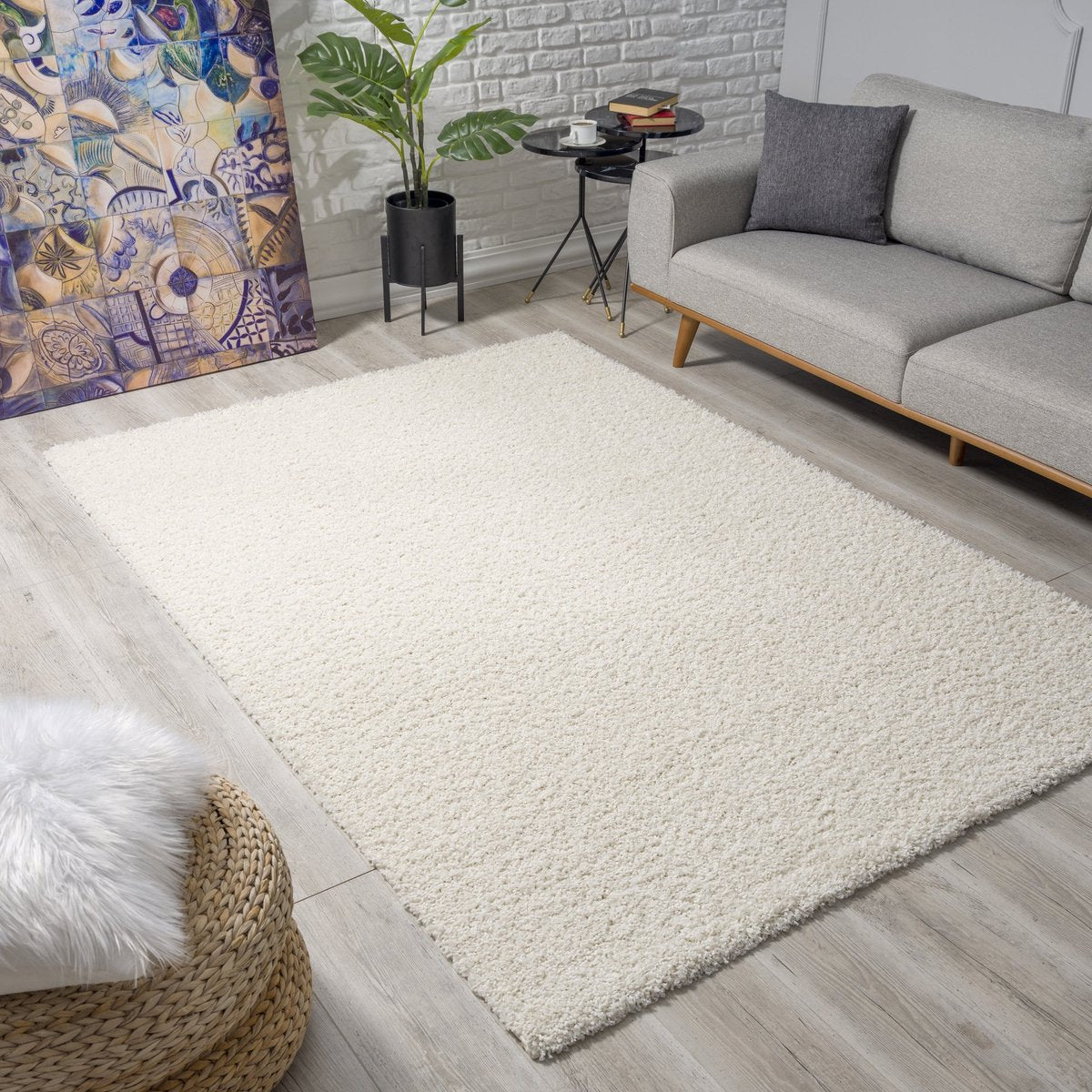 Loca Shaggy Vloerkleed Creme - 140x200 CM - Vloerkleed Hoogpolig - Tapijt Woonkamer, Slaapkamer