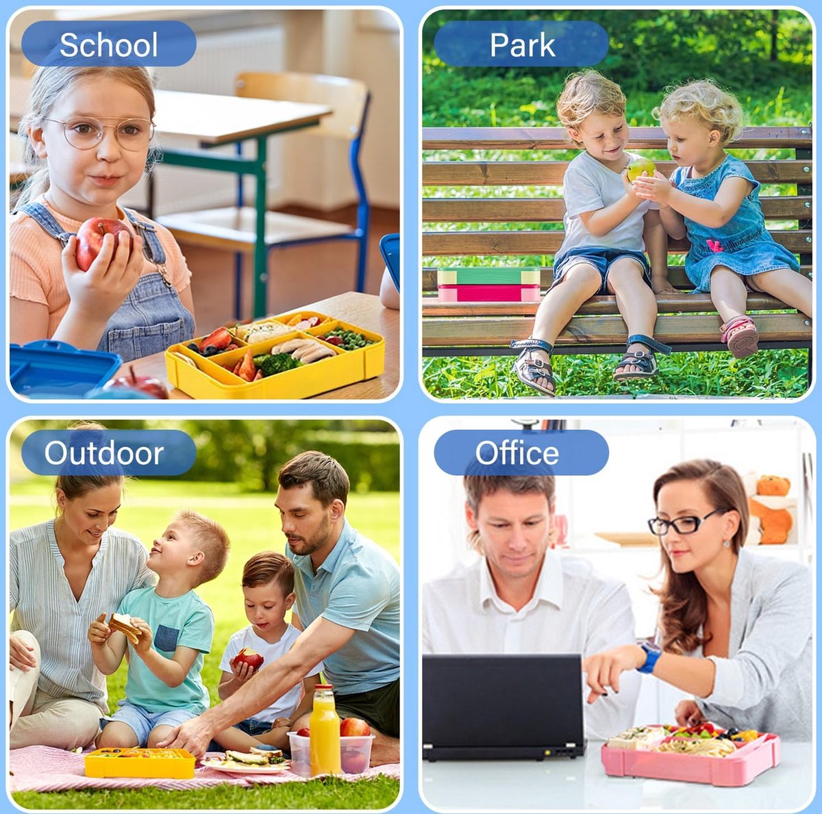 - 【Veiligheidsmateriaal】De lunchbox voor kinderen met vakken met vakken bestaat uit hoogwaardig PP-materiaal, is licht en duurzaam, BPA-vrij, niet giftig en smaakneutraal. Het is een veilige, milieuvriendelijke en herbruikbare lunchbox voor kinderen met onderverdeling. Gezond voor kinderen en volwassenen.