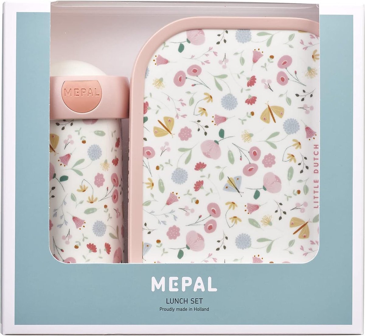 Lunchset Campus (schoolbeker en lunchbox) Little Dutch - Flowers & butterflies.