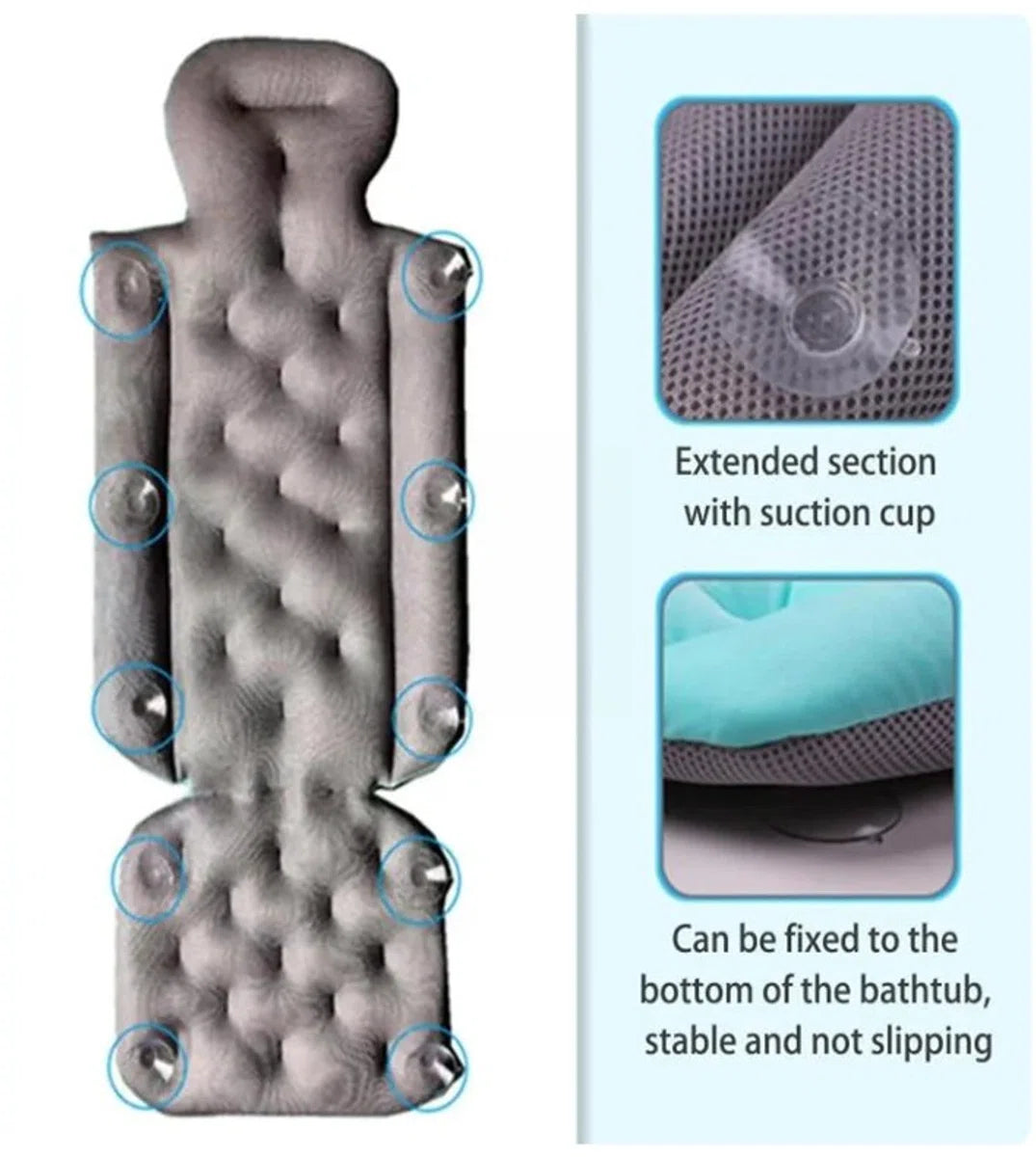 Het badkussen is voorzien van een anti-slip ontwerp, waardoor het stevig op zijn plaats blijft liggen en je je geen zorgen hoeft te maken over verschuiven tijdens het baden. Dit zorgt voor een stabiele en veilige ondersteuning, zodat je volledig kunt ontspannen zonder je zorgen te maken over het kussen dat wegglijdt.