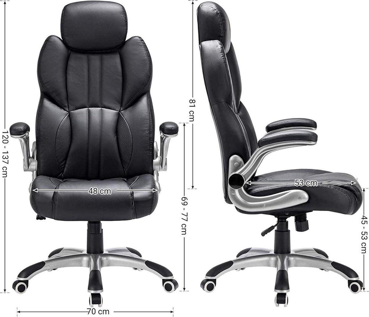 Luxe Ergonomische Bureaustoel Met Kantelmechanisme - Directie Managerstoel Ergonomisch - Kantoor Stoel Met In Hoogte Verstelbare Hoofdsteun & Inklapbare Armleuningen - Kunstleer - Zware Belasting
