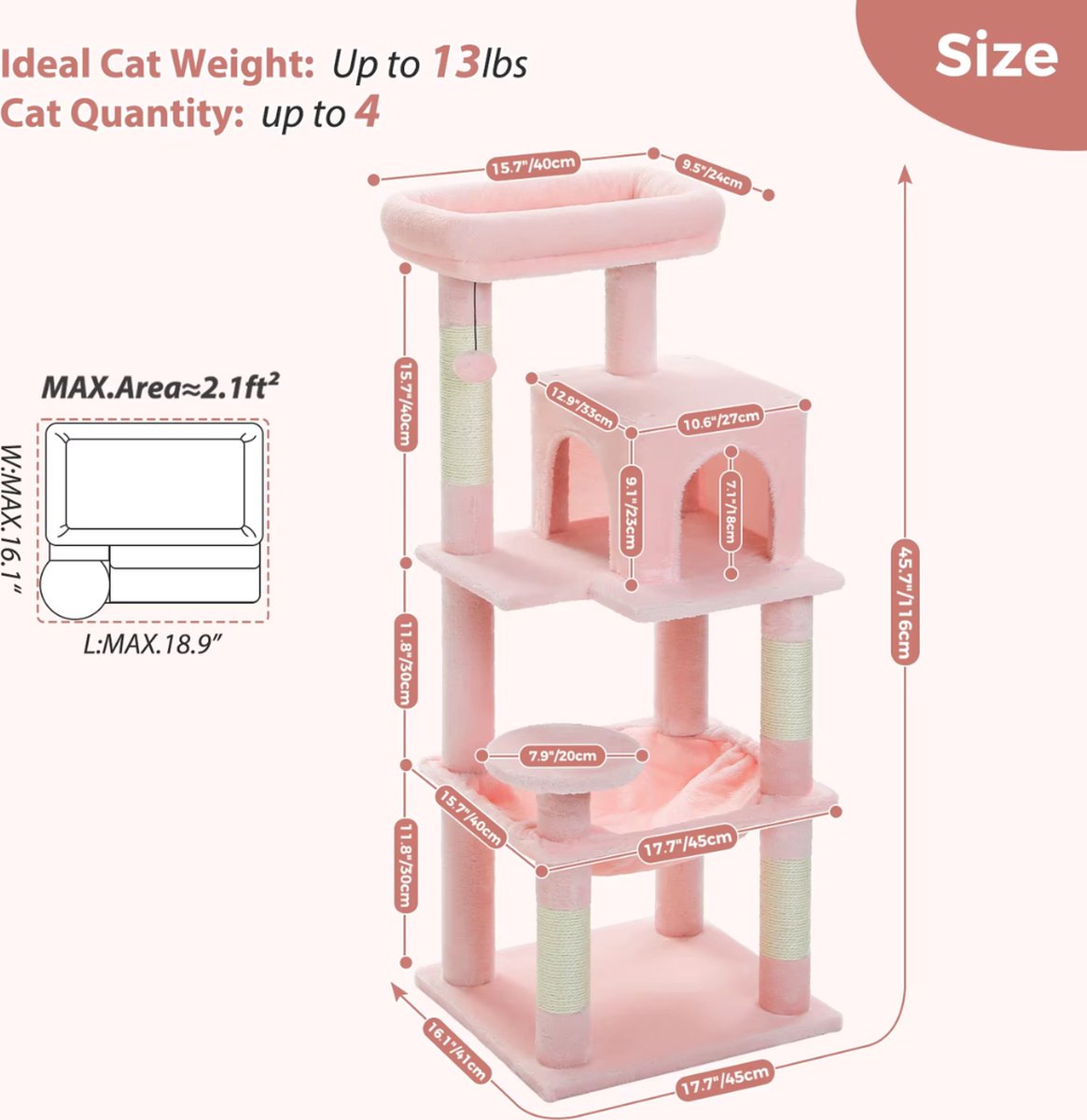 - Ruimtelijke afmetingen van 41x45x116 cm: Biedt voldoende ruimte voor katten van verschillende groottes en leeftijden.