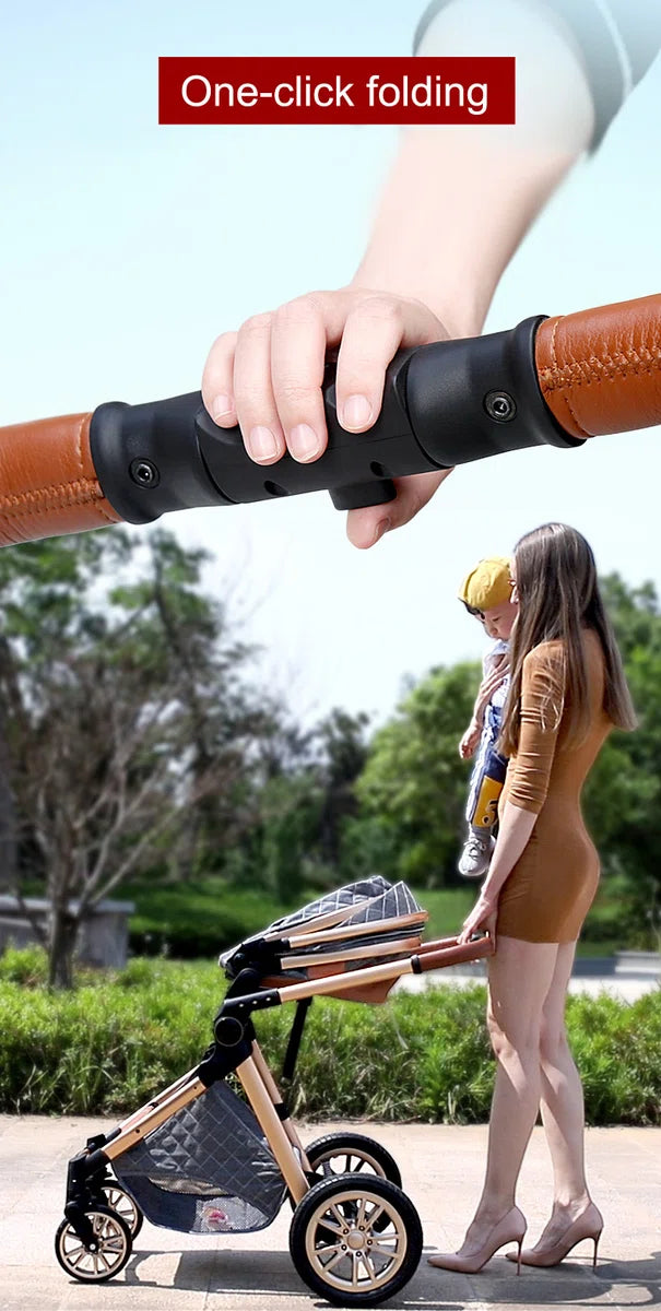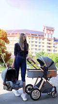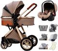 Luxe Multifunctionele 3-in-1 Combi Kinderwagen – Kwalitatieve Buggy – Opklapbare Wandelwagen – Khaki – Incl. Autostoel