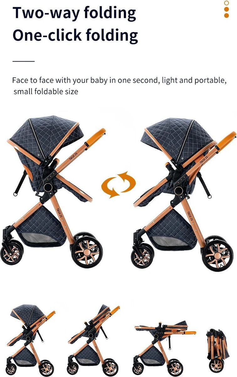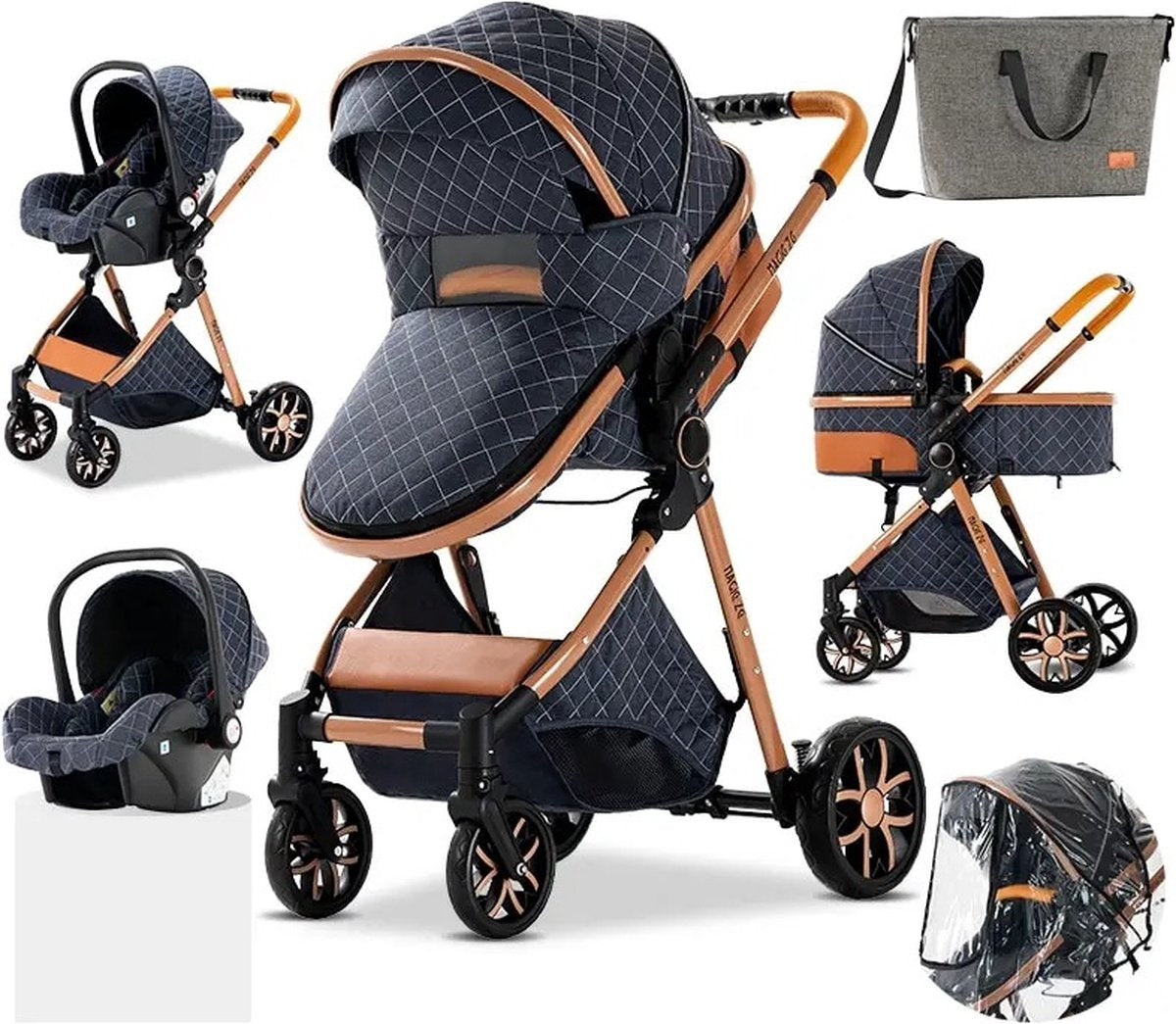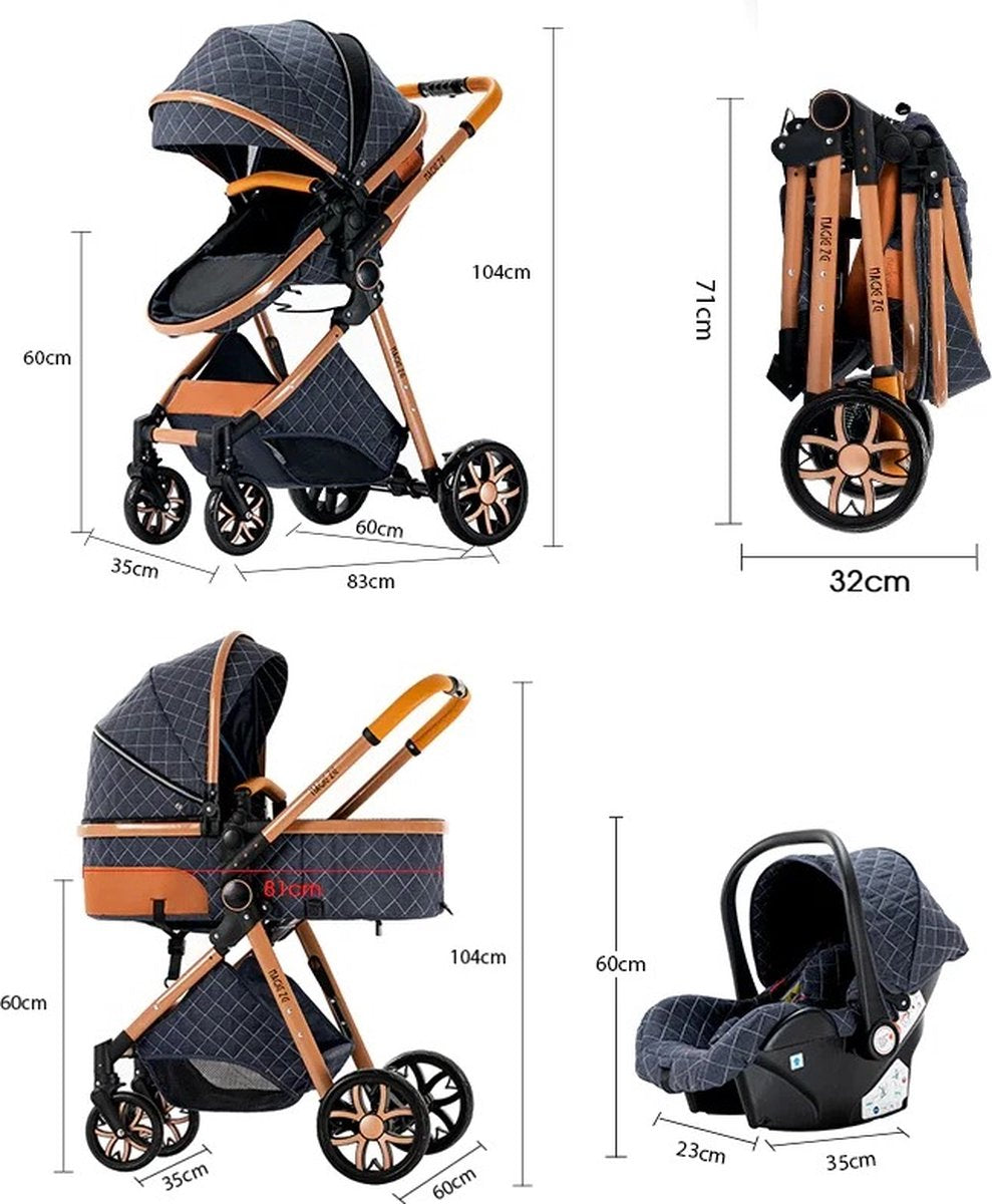 Luxe Multifunctionele 3 in 1 Combi Kinderwagen - Kwalitatieve Buggy - Opklapbare Wandelwagen - Maxi Cosi stijl - Incl. Autostoel - Blauw