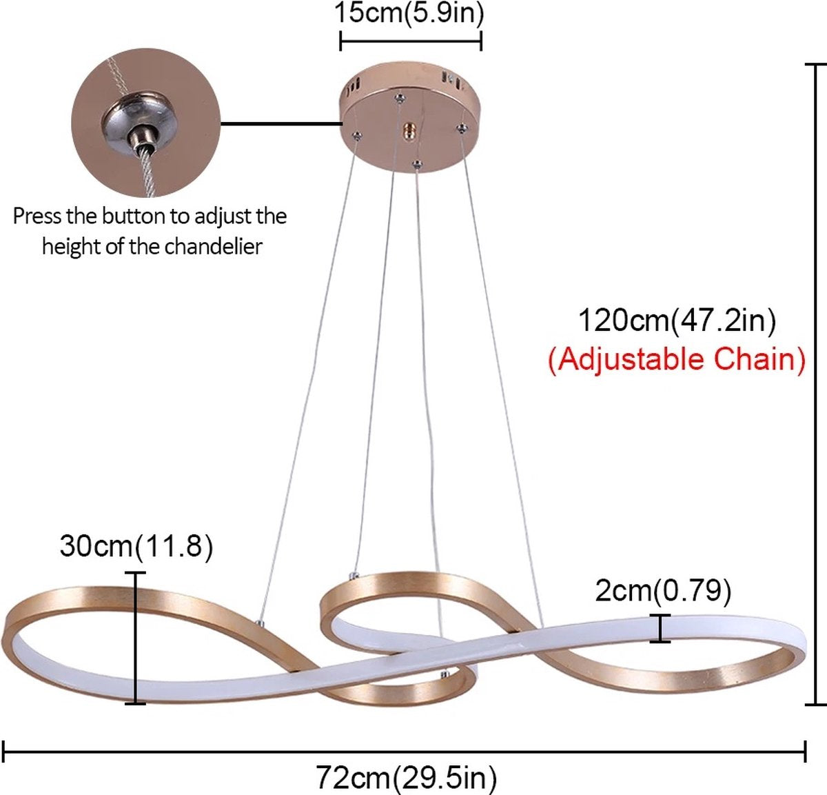 LuxiLamps - Hanglamp - Kroonluchter - Goud - Woonkamerlamp - Dimbaar Met Afstandsbediening - Moderne lamp - Eetkamer Lamp - LED Plafondlamp - Plafonniere