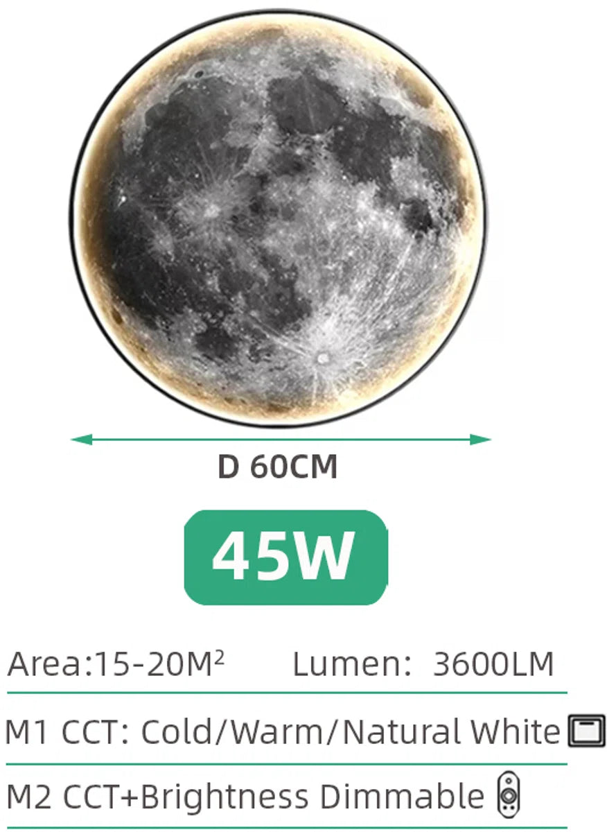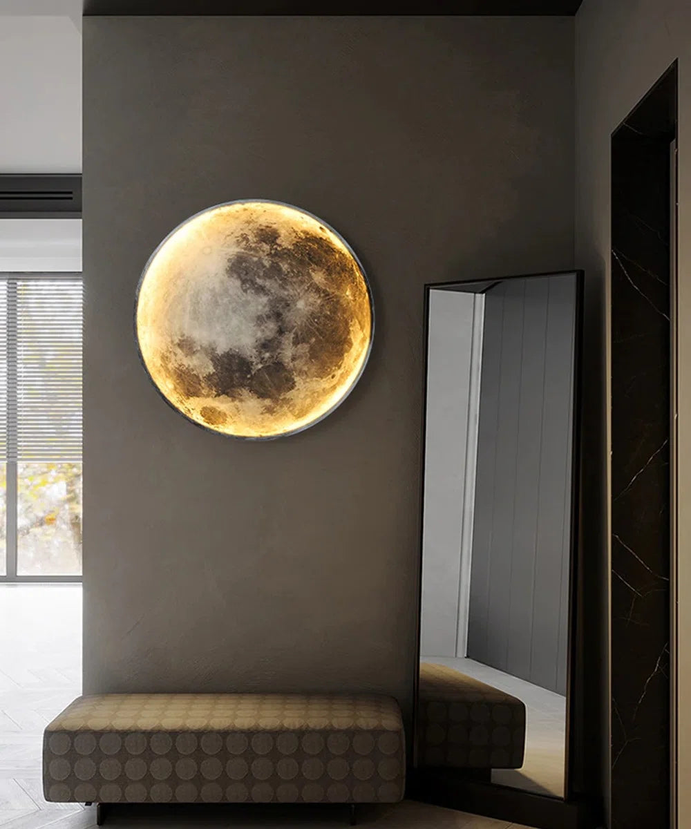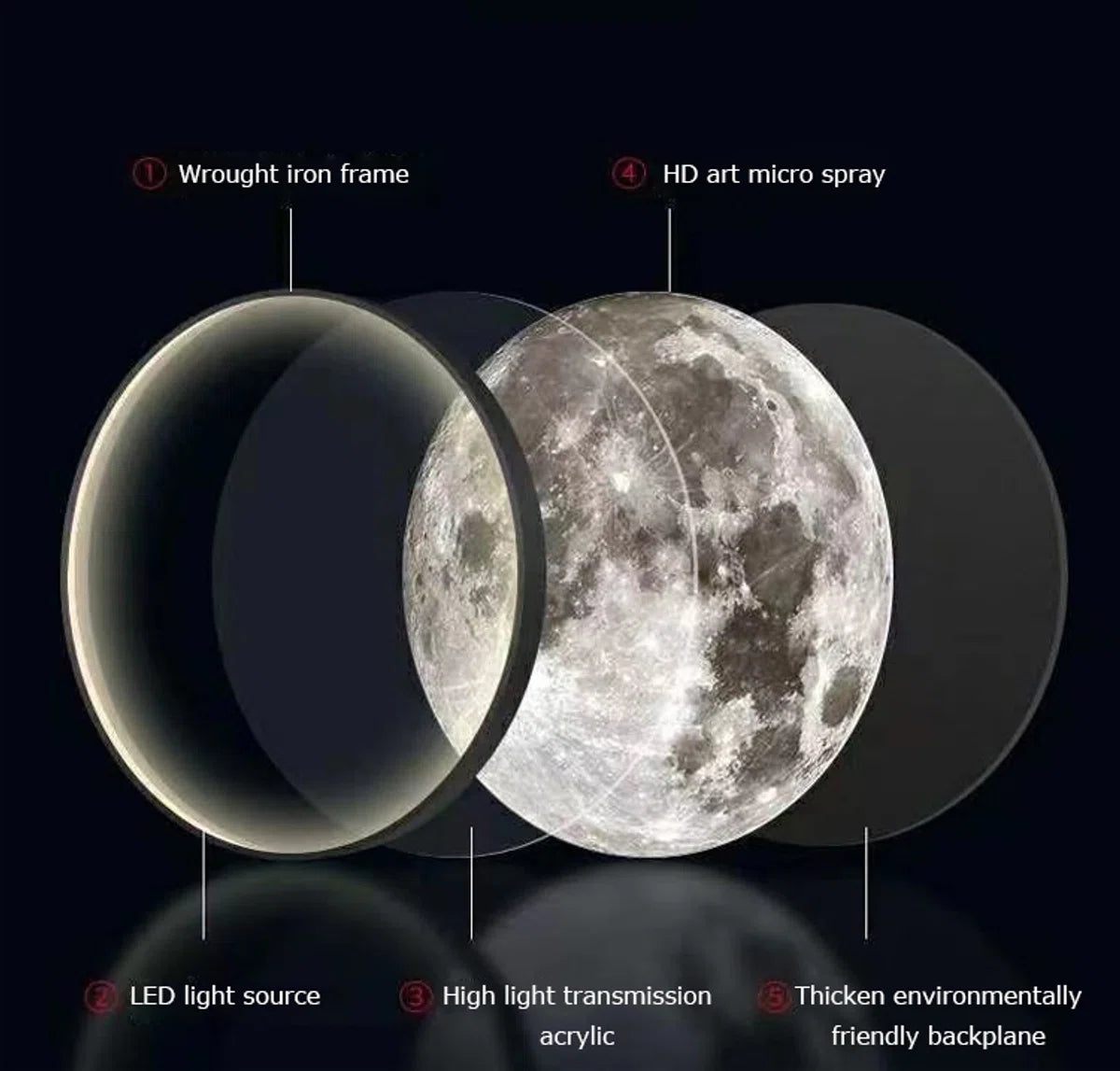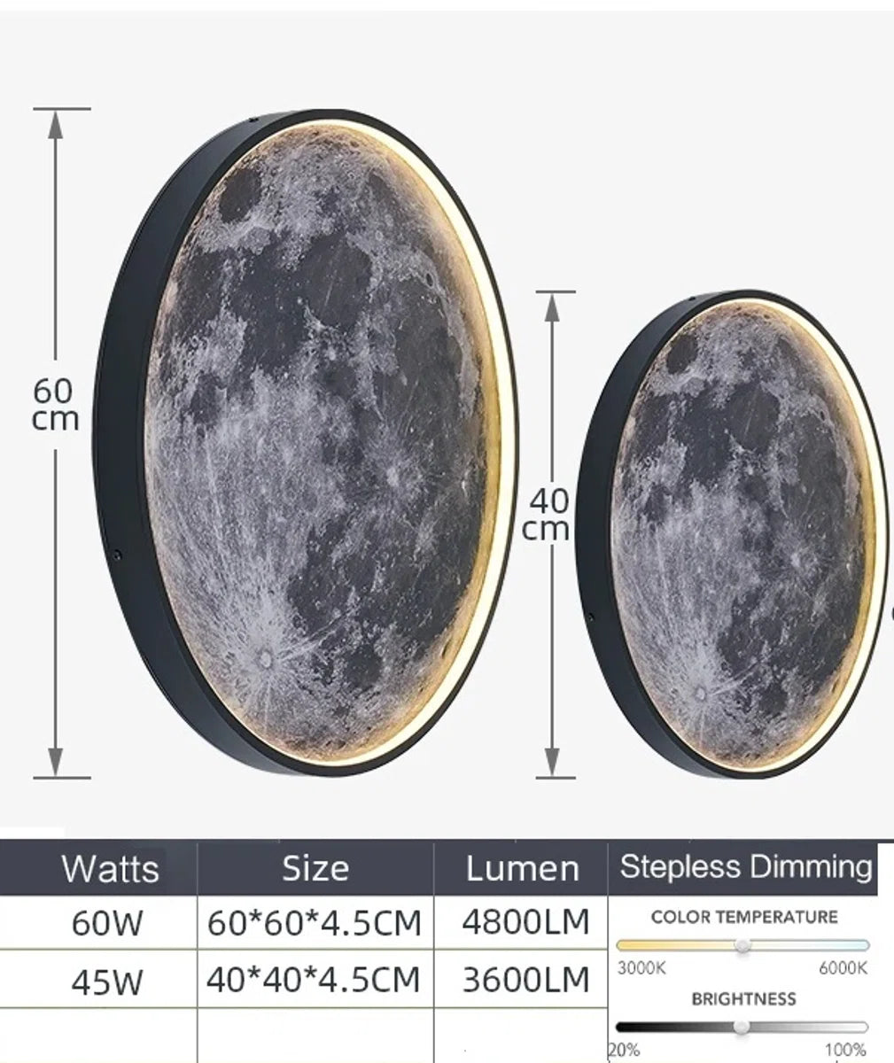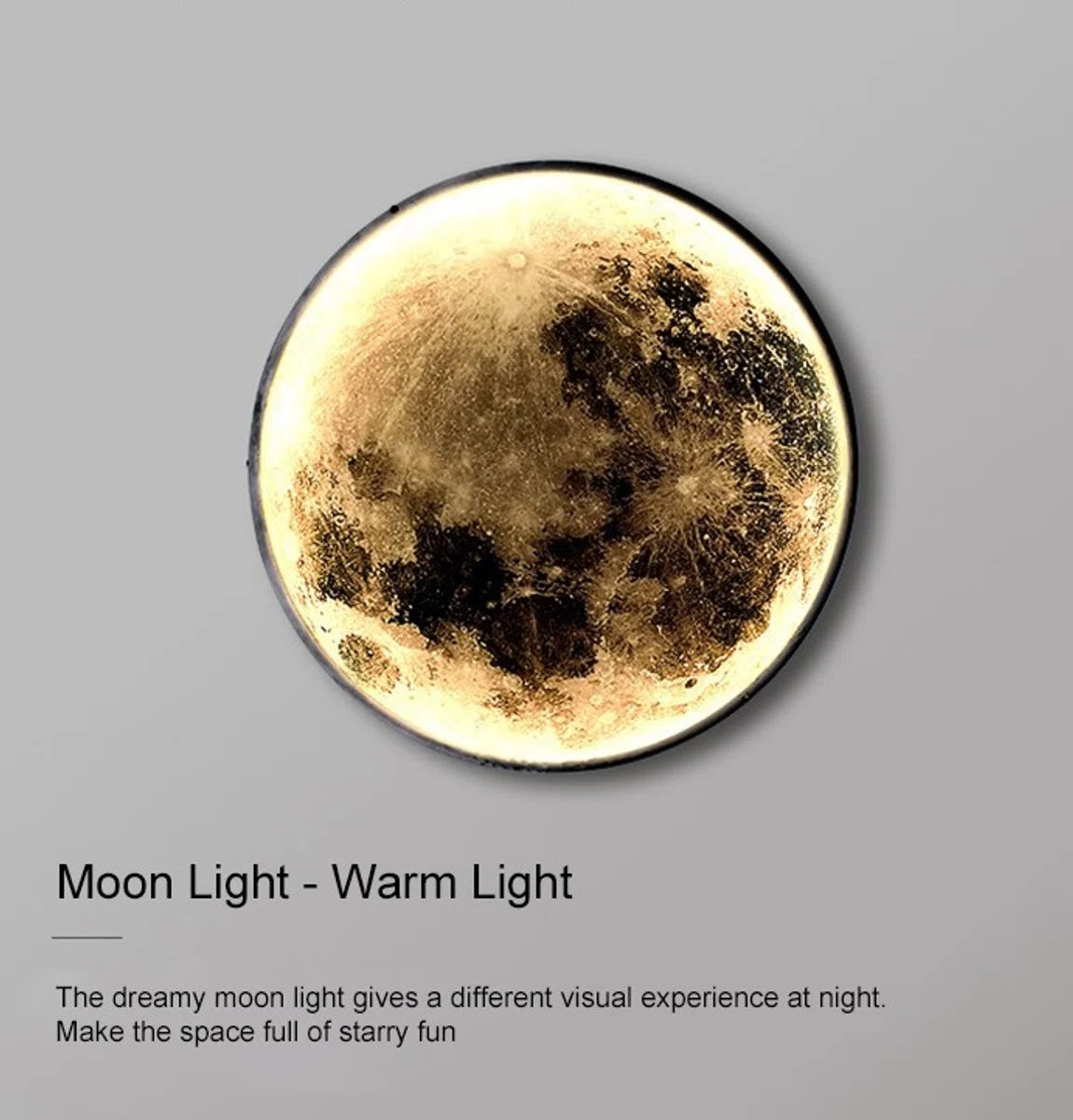 De lamp kan aan de muur worden gemonteerd voor een naadloze look en het maanontwerp voegt een unieke en stijlvolle touch toe aan elke ruimte.