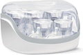 Als het deksel gesloten blijft, houdt de sterilisator de inhoud tot 24 uur steriel. Dit betekent dat je de sterilisator ’s avonds kunt gebruiken en de volgende ochtend nog steeds steriele flessen hebt, wat tijd bespaart en gemak biedt.