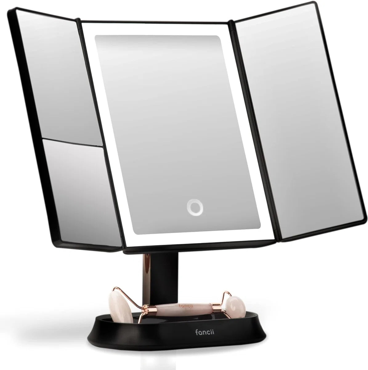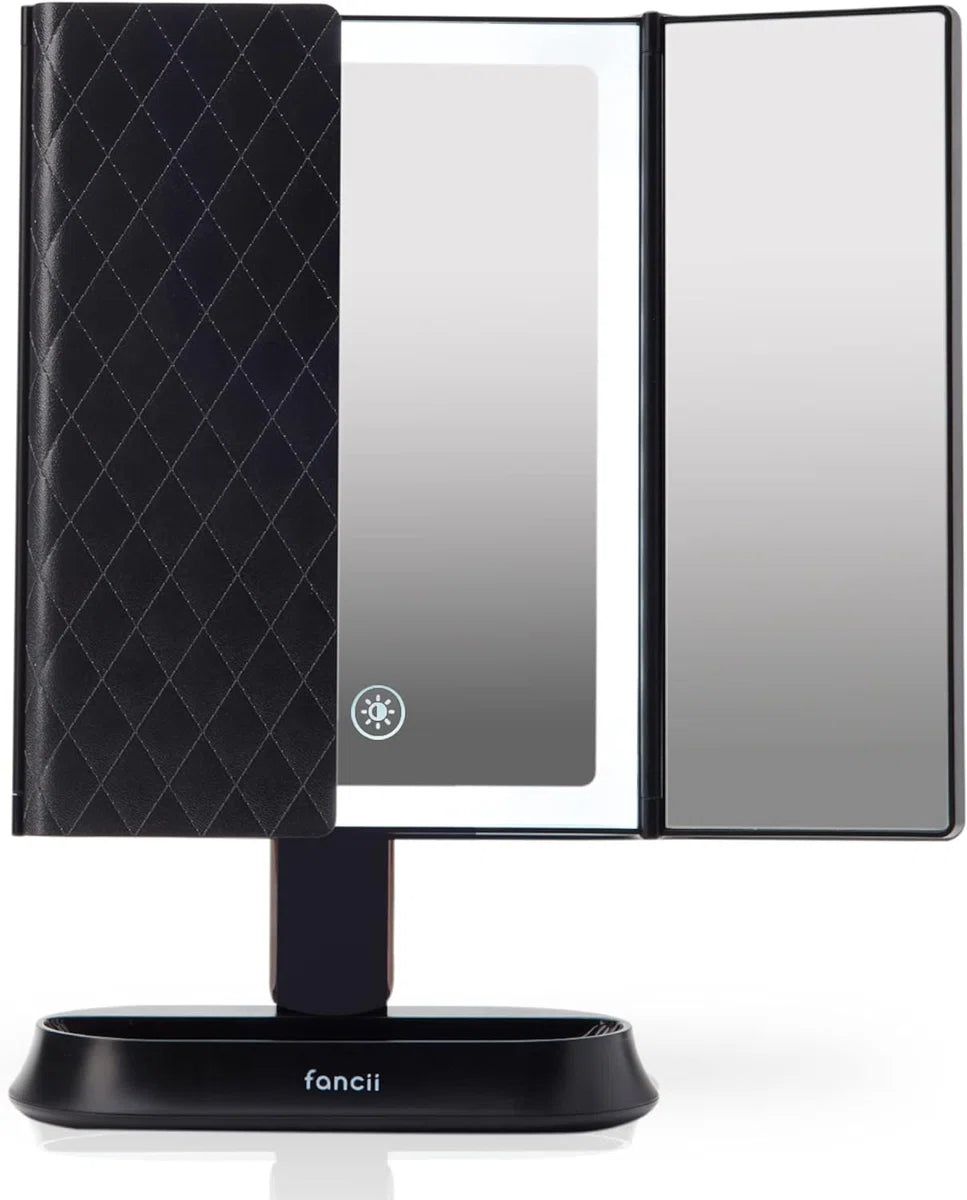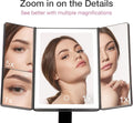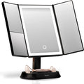 Make-up Spiegel met Natuurlijke LED Licht en 5x & 7x Vergroting - Driedelige Makeup Mirror met dimbare Verlichting Touch Screen Stand - Sora (Zwart)