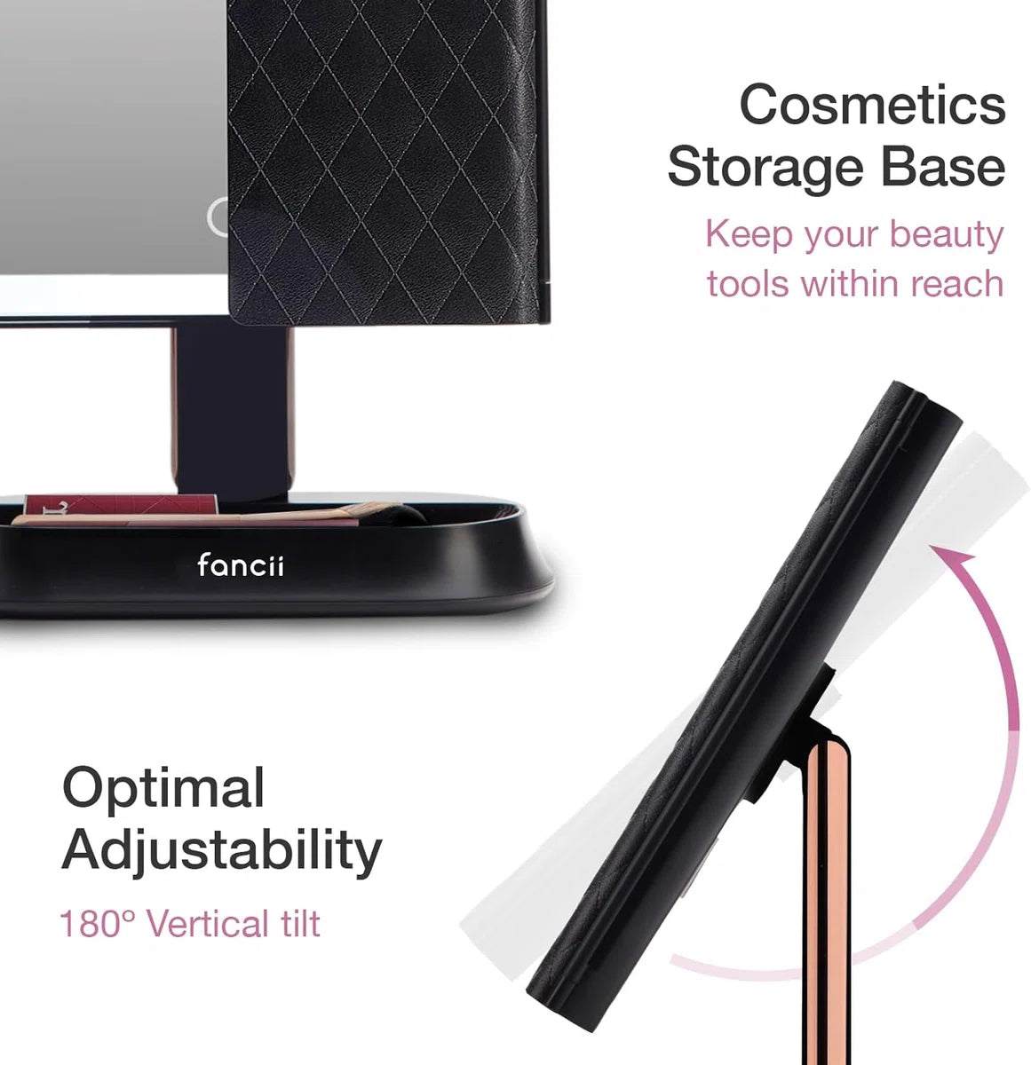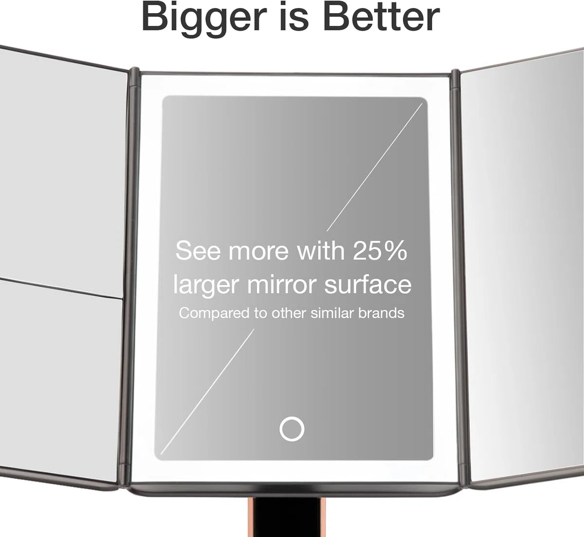 Extra breed kijkveld: Met grotere dan gemiddelde 3-panel ultra-reflecterende spiegels en meerdere kijkhoeken, zul je er altijd op je best uitzien en je op je gemak voelen. De spiegel is 180° draaibaar, waardoor je hem volledig kunt aanpassen aan elke gewenste positie.