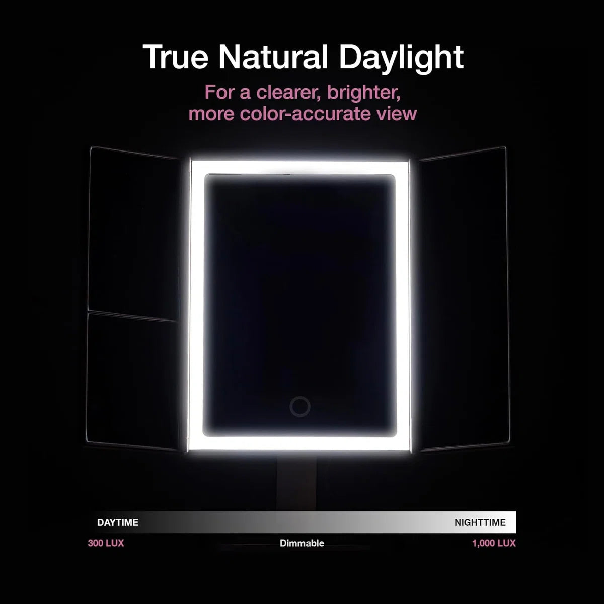 Ervaar het beste van natuurlijk daglicht met deze make-up spiegel met echte natuurlijke daglicht LED's. Met 2x helderheid ten opzichte van de op één na beste, zul je genieten van zacht en helder licht dat levensechte kleurcorrecte details onthult. Een must-have voor perfecte make-up looks en kapsels!