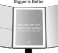 Reisvriendelijk: Met een hoogte van 32 cm en een breedte van 35 cm, gemonteerd op een afneembare cosmetische organizer basis, is deze spiegel ideaal voor op reis. De drie panel spiegels kunnen gemakkelijk worden opgevouwen voor ultieme draagbaarheid.