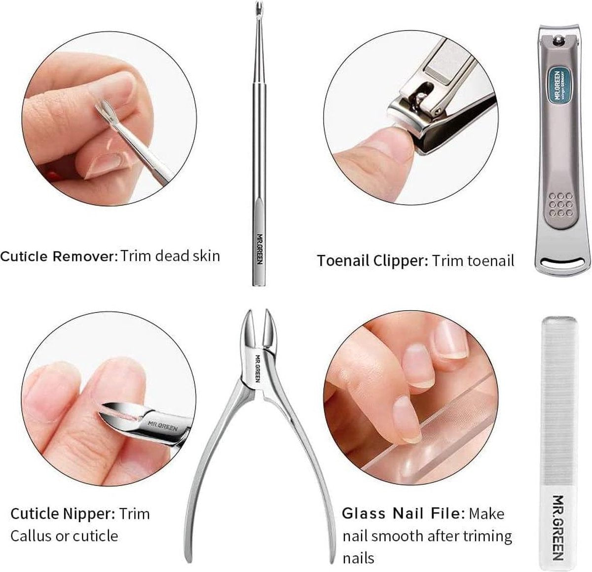 Deze manicureset is een 7-in-1, multifunctionele professionele pedicureset die alles biedt wat je nodig hebt voor handverzorging, gezichtsverzorging en voetverzorging. Dankzij het draagbare ontwerp kun je het gemakkelijk elke dag in je tas meenemen of meenemen als je op reis gaat.