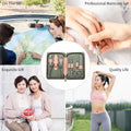 De nagelclipset is ontworpen met een draagbaar formaat en wordt geleverd met een lederen hoes, zodat je het gemakkelijk in je handtas, auto of bagage kunt opbergen. Hierdoor kun je overal genieten van een nagel- en gezichtsbehandeling.