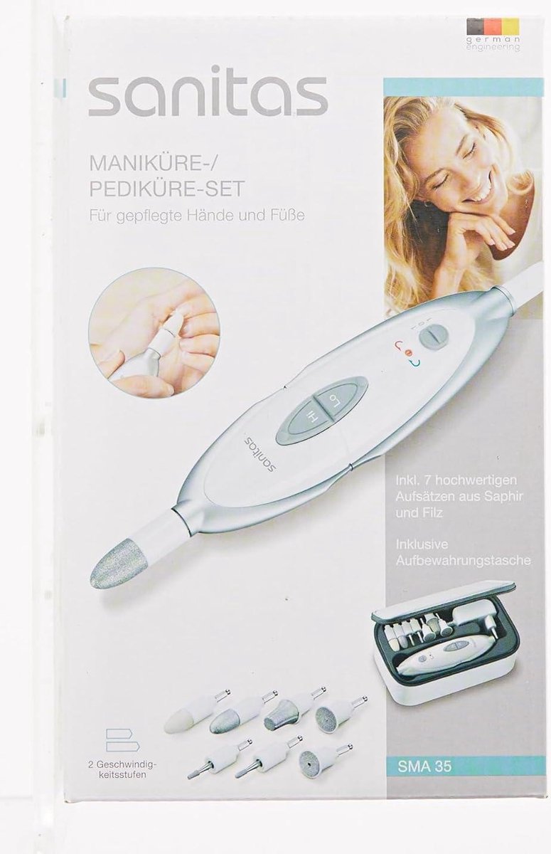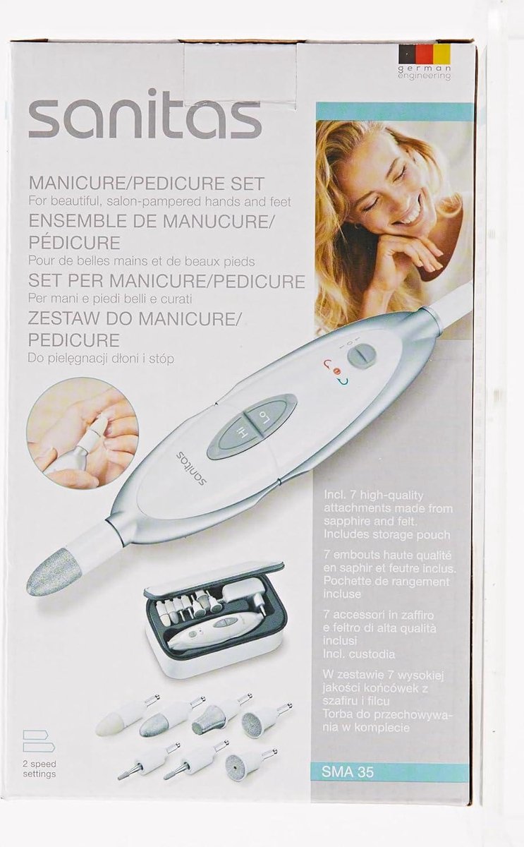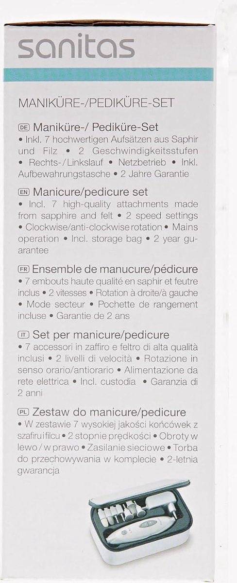 Deze professionele nagelverzorgingsset met 7 hoogwaardige opzetstukken van saffier en vilt is ideaal voor het verzorgen van zowel handen als voeten. Met de verschillende opzetstukken kun je eenvoudig je nagels inkorten, vijlen, vormen en polijsten, maar ook eelt, nagelriemen en likdoorns verwijderen.