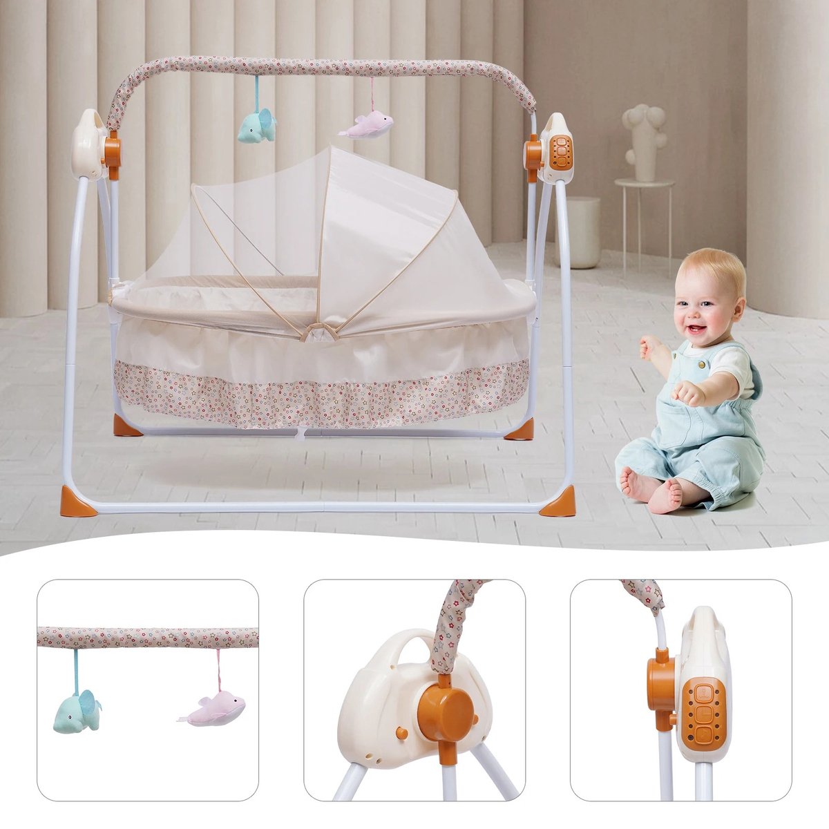 MazrekuHome® - Babyschommel - Schommelstoel baby - Elektrische wipstoel - Bluetooth muziek - Verstelbaar in verschillende standen