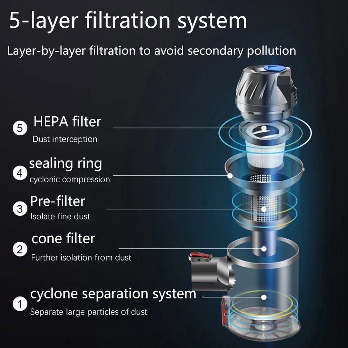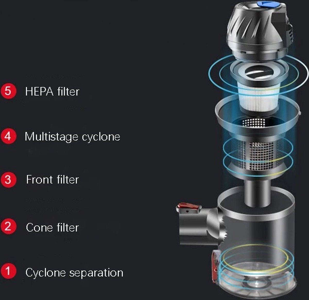 MazrekuHome® Stofzuiger zonder zak - Stofzuiger draadloos - Krachtige zuigkracht met dual motor en LED verlichting