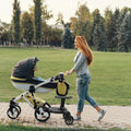 360° Dual Wheel Design-De dubbele wielconstructie verhoogt de stabiliteit van de pedalen, voorkomt effectief rollen en is veiliger in gebruik.360° Universal Wheel Design, na het aansluiten van de kinderwagen kunnen de pedalen in elke richting met de kinderwagen mee.