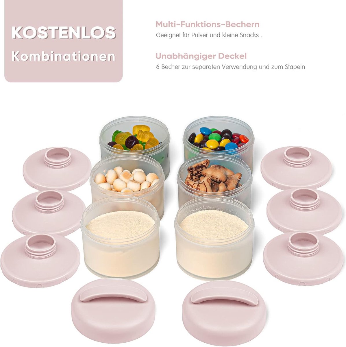 • Stapelbaar: Combineer de melkpoeder compartimenten naar behoefte. Je kunt verschillende soorten voedsel bewaren zoals melkpoeder, havermout, noten, enz.