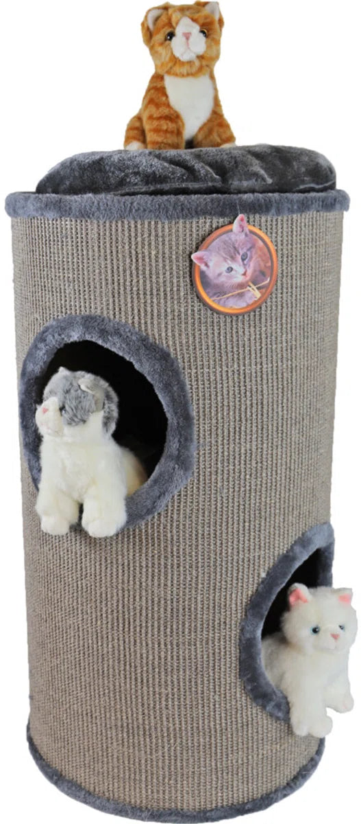 Het Krabton sisal 3-gaats is een stevige, robuuste, ronde en multi-functionele krabton. Katten kunnen in, aan en op deze krabton spelen, klimmen, krabben en slapen. Bij deze krabton zitten heerlijke zachte pluche kussens voor nog meer slaapplezier voor jouw kat.