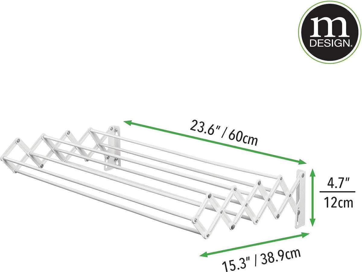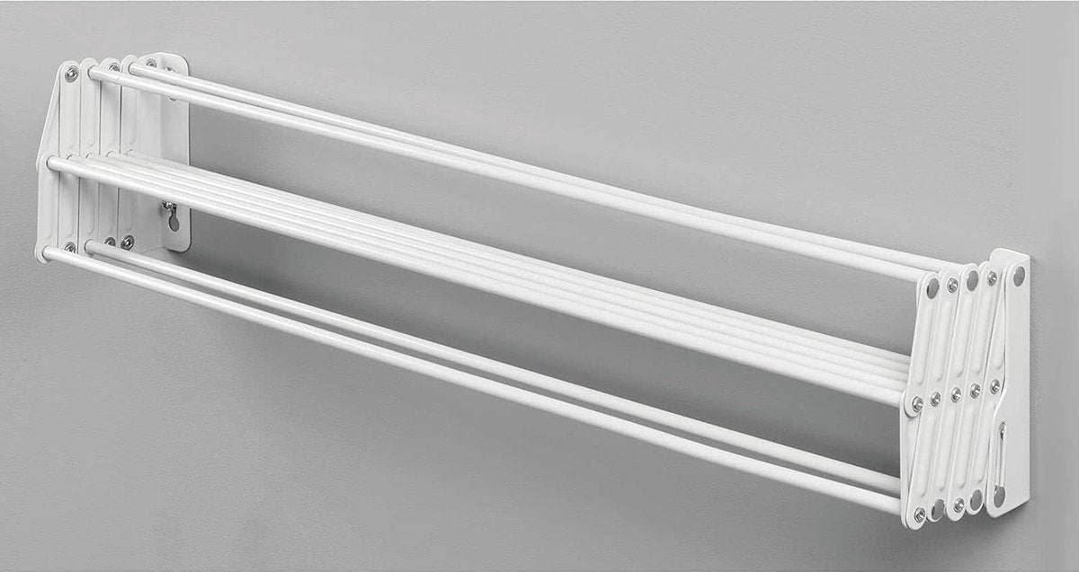 Metalen kledingrek - Uitschuifbare waslijn - Ruimtebesparend opvouwbaar droogrek voor aan de muur - Wit