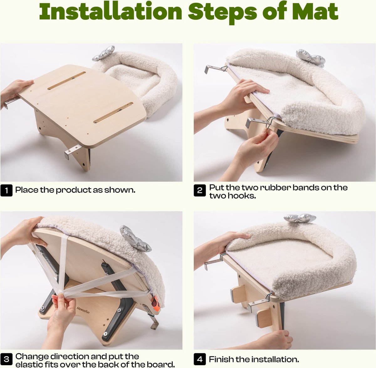 De hangmat is gemakkelijk te installeren en kan in enkele minuten worden bevestigd aan elk raam in uw huis. Het is ook gemakkelijk schoon te maken en te onderhouden, omdat de kussenmat afneembaar is en in de wasmachine kan worden gewassen.