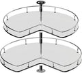 De driekwart carrousel beschikt over maar liefst twee (2) zwenkplaten voor de hoekkast in de keuken. De draaiplateau ’s hebben een witte bodem en zijn tevens voorzien van verchroomde randen, die het product een luxueuze en moderne uitstraling geven. Daarnaast zijn ze volledig met antraciet afgewerkt, waardoor het systeem in ieder interieur past.