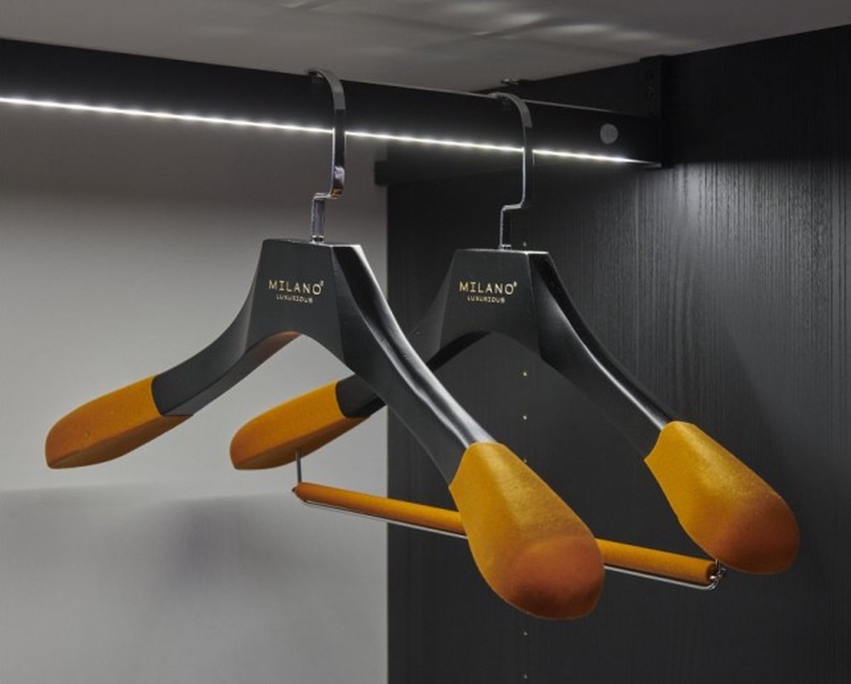 Voeg luxe toe aan je garderobe met de Milano Luxurious kledinghanger, waar stijl en functionaliteit elkaar ontmoeten in elk detail.