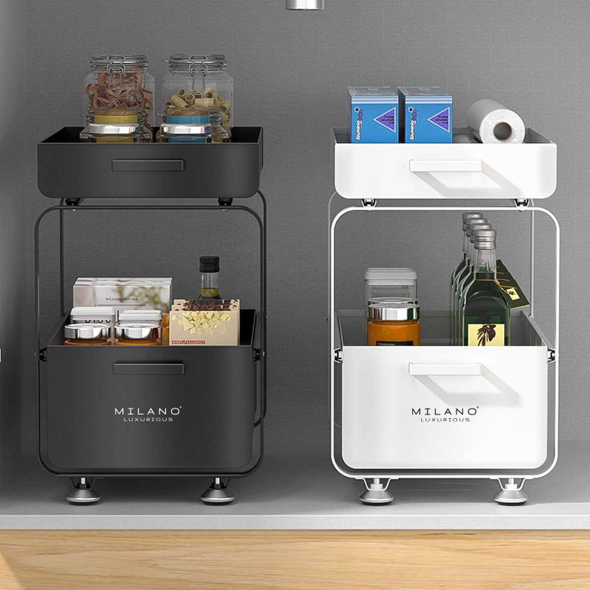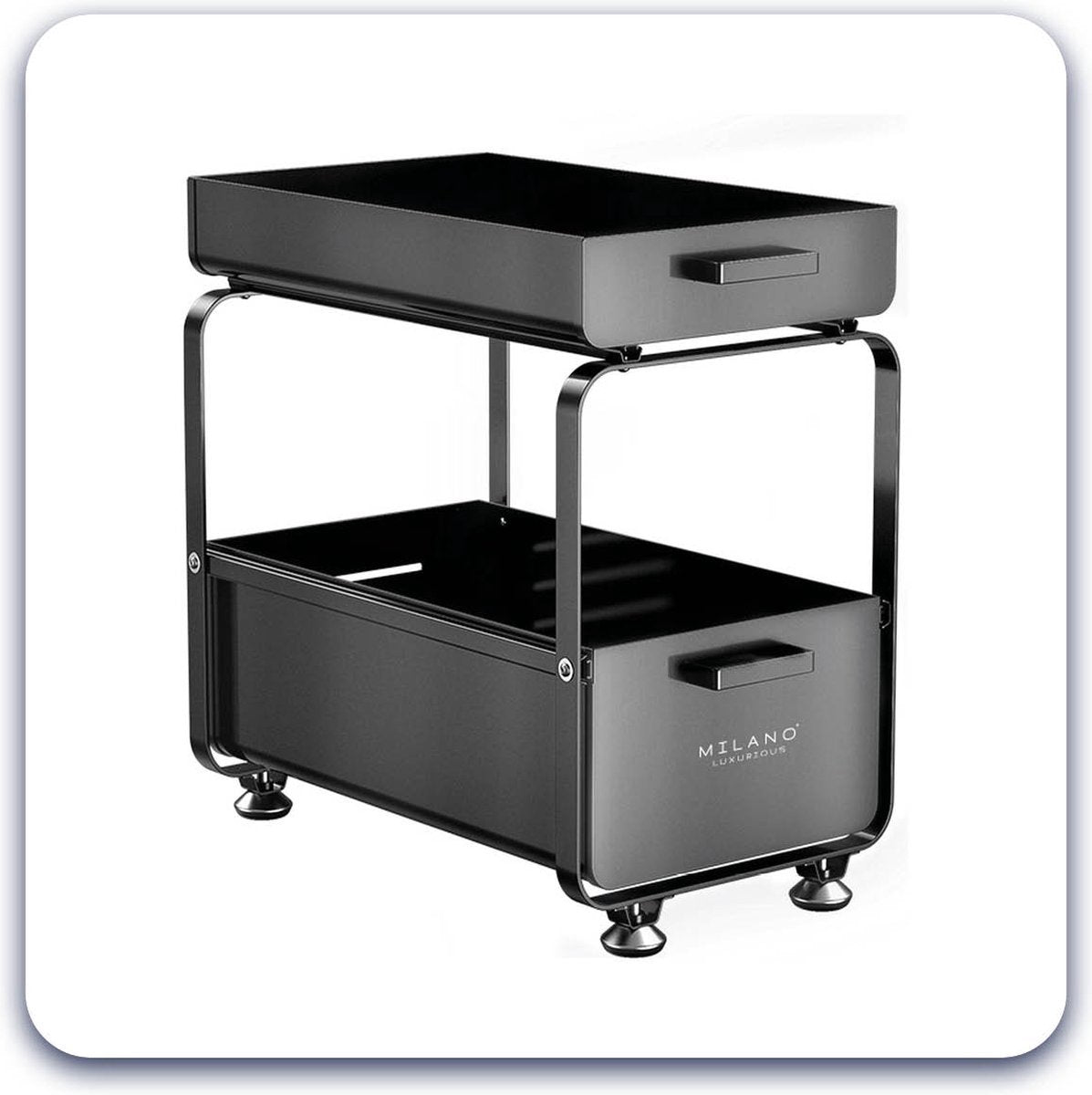 Milano Luxurious organizer lade zwart– keuken ladekast – gootsteenkast organizer – opbergrek voor het aanrecht – tweelaags ladesysteem – opslag voor keukenkast of badkamerkast