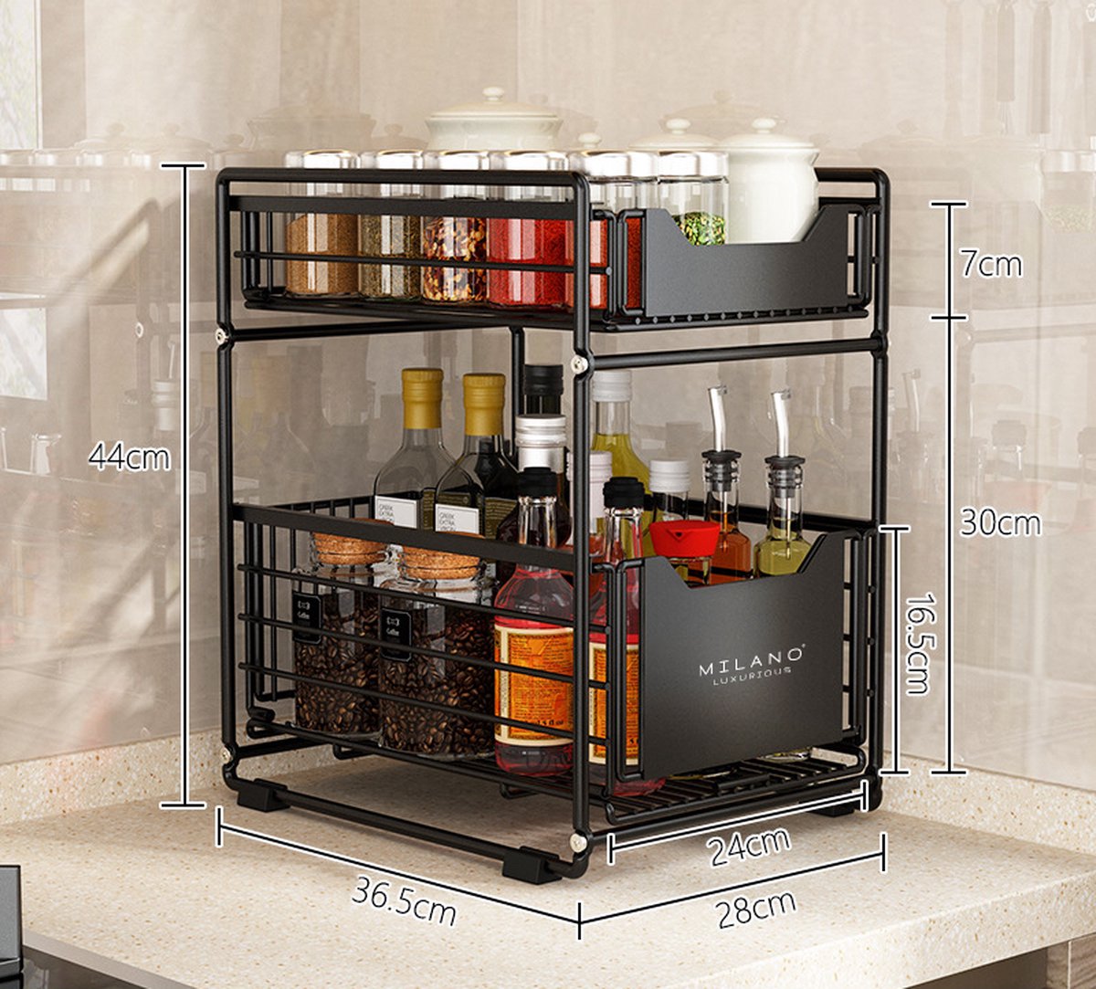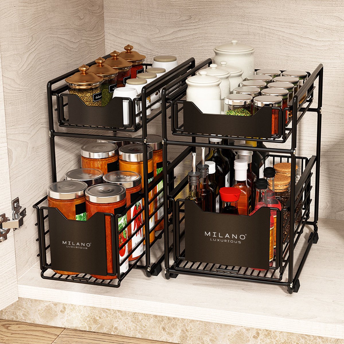 Milano Luxurious organizer lade Zwart – Keuken ladekast – Gootsteenkast organizer – Opbergrek voor het aanrecht – Tweelaags ladesysteem – Opslag voor keukenkast of badkamerkast – maat XL
